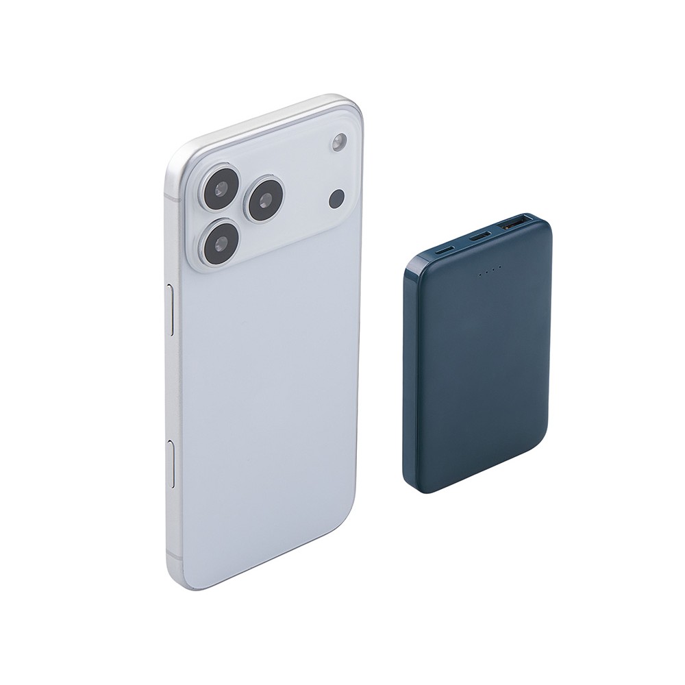 Стильный, тонкий и практичный — этот 5000 мАч повербанк создан для тех, кто ценит мобильность и универсальность. Идеальный корпоративный подарок для клиентов, партнёров и сотрудников, которые всегда в движении! Совместим со всеми смартфонами, имеется двунаправленный USB-C и дополнительное удобство - входной разъем Lightning. Разъемы USB-C и USB-A обеспечивают одновременную зарядку двух устройств. Благодаря мини размерам 91.5*62* мм и лёгкому весу (всего 102 г) легко помещается даже в карман рубашки или кошелёк. Лаконичная матовая поверхность выгодно подчеркнет логотип, а надёжная система защиты гарантирует безопасность при каждой зарядке. Поставляется в продуманной выдвижной упаковке с быстрым и эффектным открытием.
