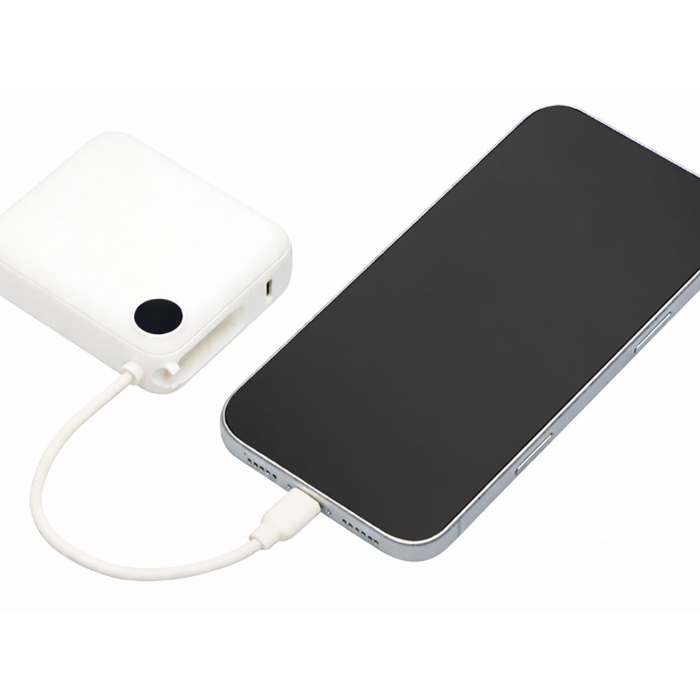 - Встроенный двунаправленный кабель-петелька USB-C — всегда под рукой! Заряжает смартфоны по USB-C (в т.ч. новые iPhone), а также заряжается сам по встроенному кабелю.