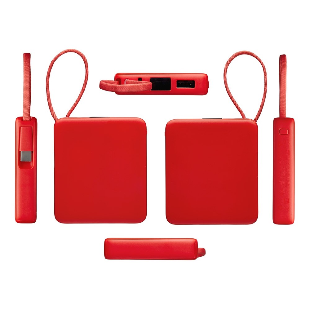 • Внешний аккумулятор со встроенным кабелем USB-C «Дэнси», 5000 мАч, красный
