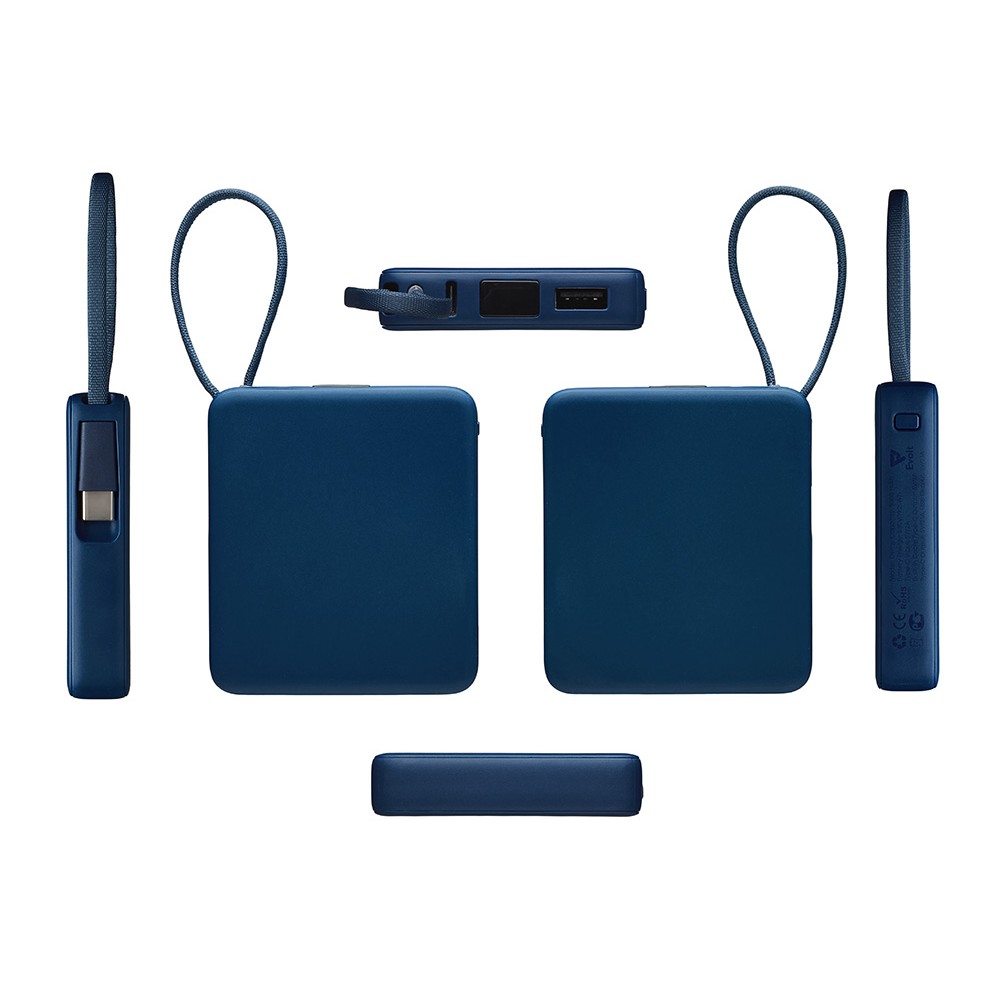• Внешний аккумулятор со встроенным кабелем USB-C «Дэнси», 5000 мАч, темно-синий