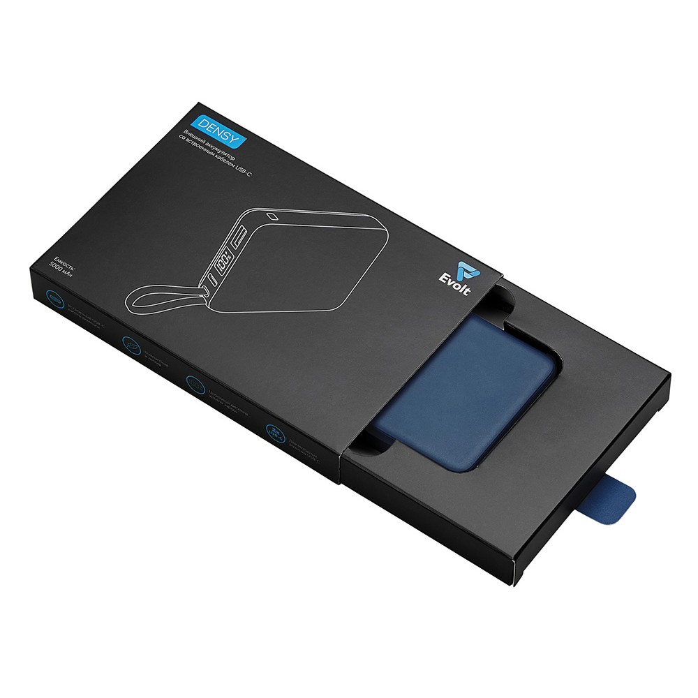 Технические характеристики Внешний аккумулятор со встроенным кабелем USB-C «Дэнси», 5000 мАч, темно-синий