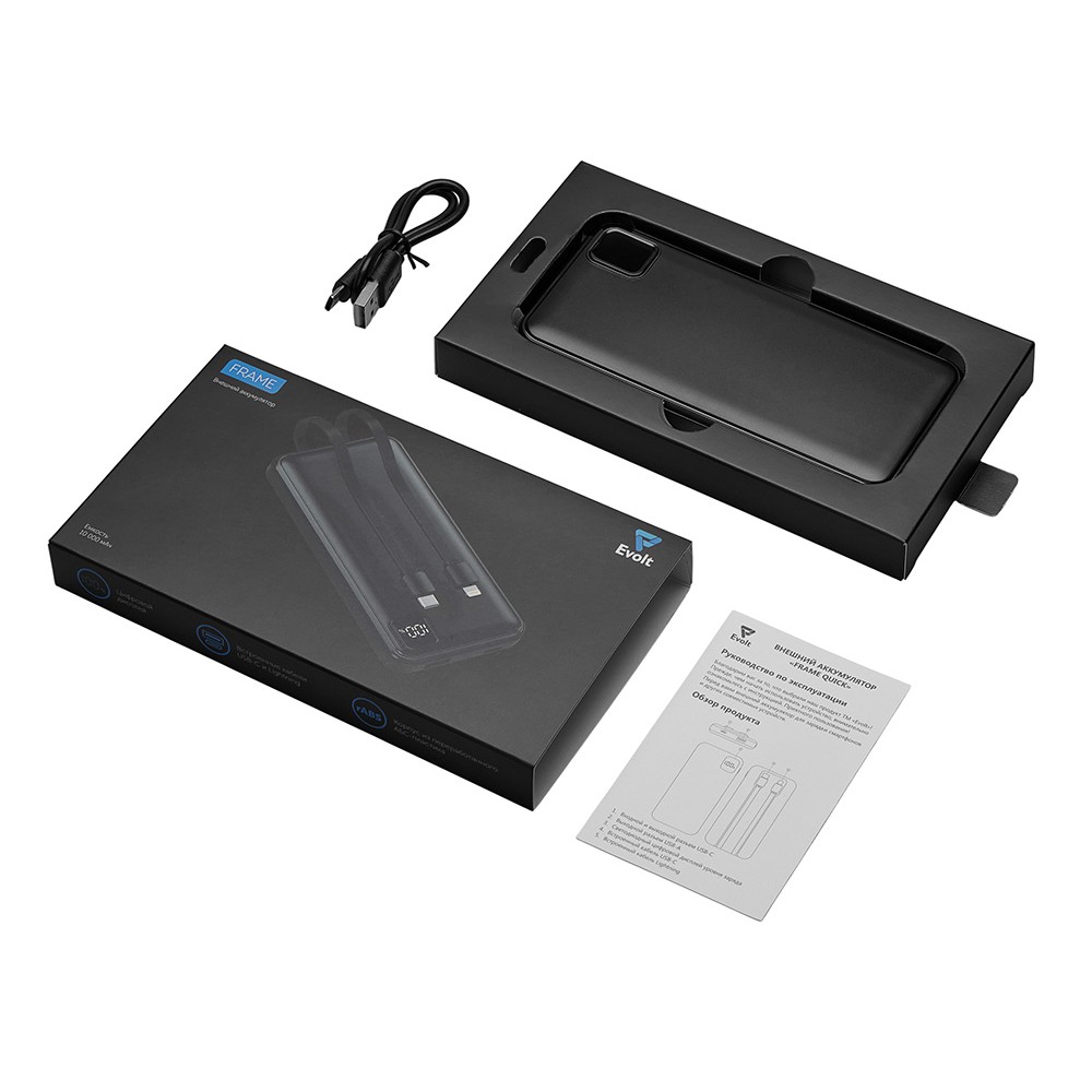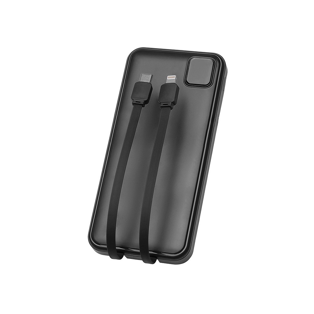 Технические характеристики Внешний аккумулятор со встроенными кабелями «Фрэйм», 10000мач, черный
