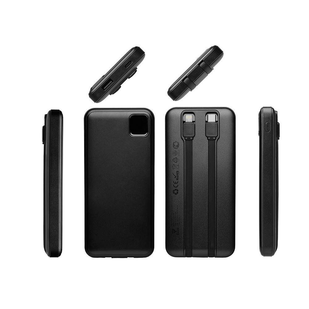 • Внешний аккумулятор со встроенными кабелями «Фрэйм», 10000мач, черный