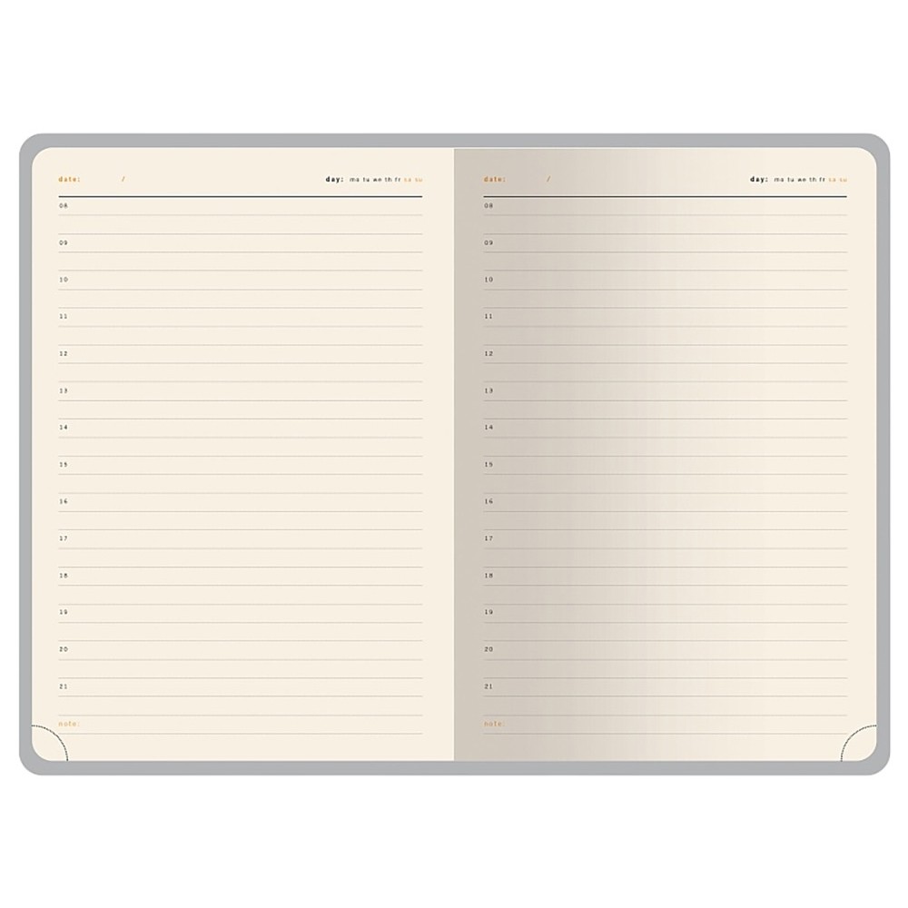 - твердая обложка из высококачественной экокожи с декоративной нитью по периметру в тон ежедневника;