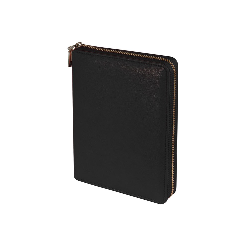 Великолепный ежедневник из качественной искусственной кожи, который заменит вам портмоне и органайзер. В ежедневнике предусмотрены карманы для карточек, сменный блок на кольцах. Внутри достаточно места для ручки и даже для мобильного телефона. Сам ежедневник закрывается на молнию. Его удобно брать с собой и на переговоры, и на деловой обед. Блок отпечатан в 2 цвета на бежевой бумаге плотностью 70 г/м2.