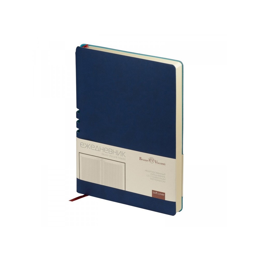 Этот ежедневник вдохновлен солнечными днями и томными ночами Мадрида. И как этот великий город он лишь намекает снаружи на свои тайны. Так, вырубка на спинке – это удобная петля для ручки. Пользоваться этим секретом – одно удовольствие. Недатированный ежедневник Madrid от Bruno Visconti исполнен в благородном темно-синем цвете. Гибкая обложка с покрытием Soft-Touch. Бордовое ляссе выгодно прекрасно сочетается со скругленной обложкой и бежевым блоком. Для изготовления данного ежедневника использована бумага плотность 70 г/м. Справочная информация на 17 страницах. Ежедневник упакован в картонный полукороб и термопленку.