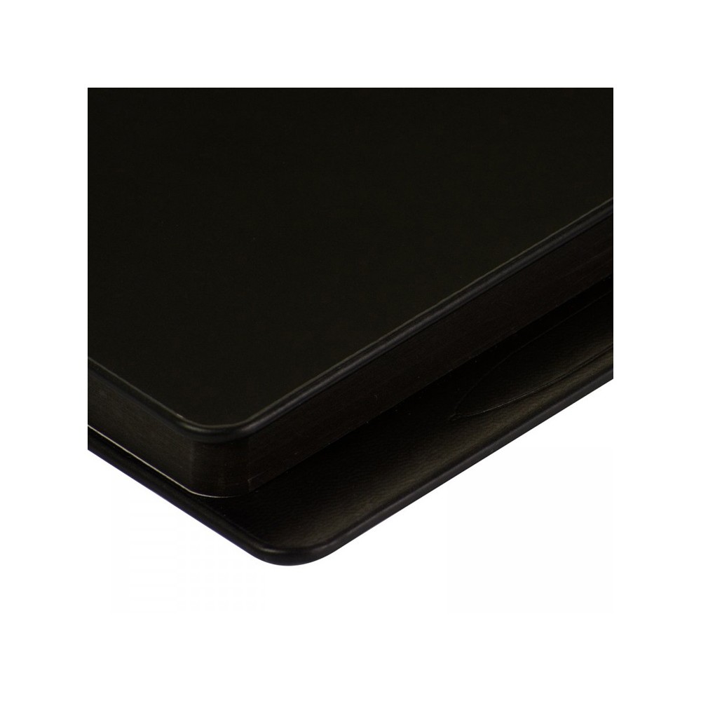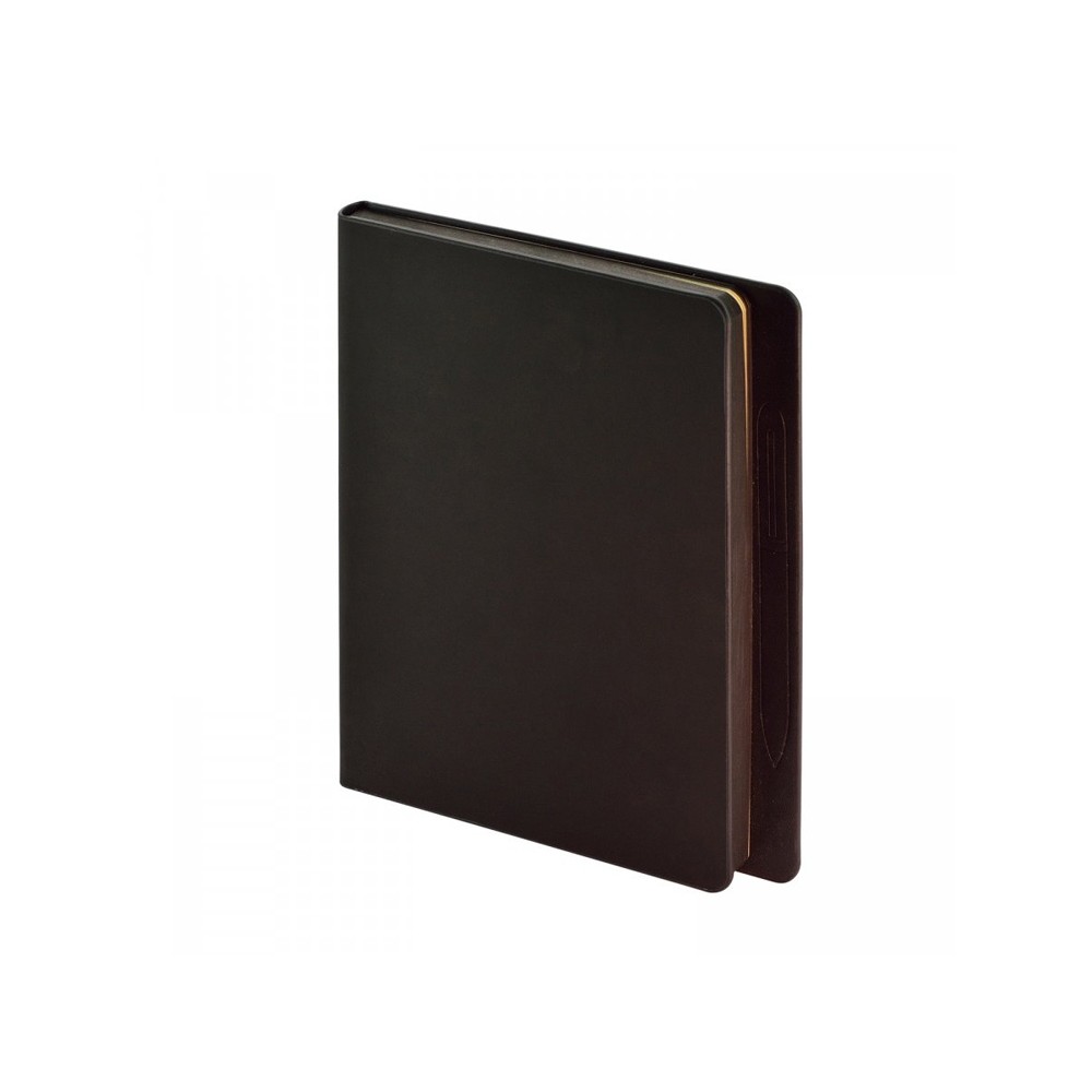 Скругленный угол обложки и блока, обрез окрашен в тон черной обложке. Покрытие обложки Soft Touch. Великолепная бумага 70 г/м. Скрытый магнит для металлической ручки. Ежедневник упакован в картонный полукороб и термопленку.