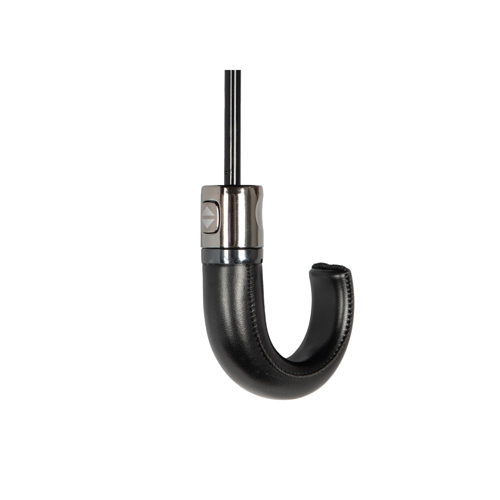 Зонт-автомат для деловых людей отличается стильным лаконичным дизайном с отделкой из искусственной кожи. Благодаря спицам из стекловолокна сможет выдержать порывы сильного ветра. На широкий фиксирующий ремешок можно нанести ваш логотип.