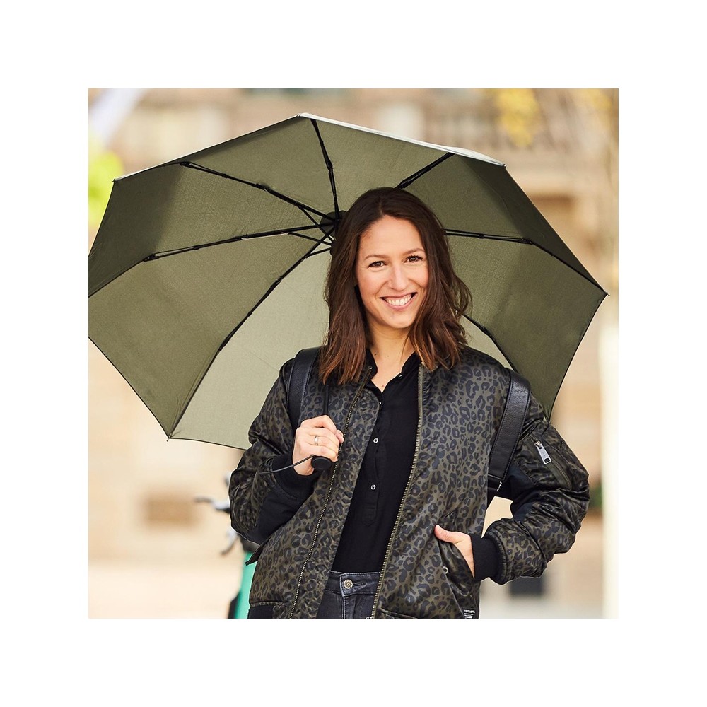 Добротный автоматический зонт с куполом из эпонжа и гибкими спицами из стекловолокна спасет от дождя и выстоит против порывов ветра. Чехол в комплекте