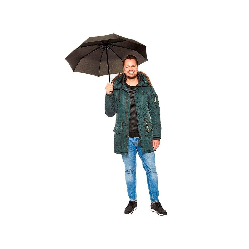 Добротный автоматический зонт с куполом из эпонжа и гибкими спицами из стекловолокна спасет от дождя и выстоит против порывов ветра. Чехол в комплекте