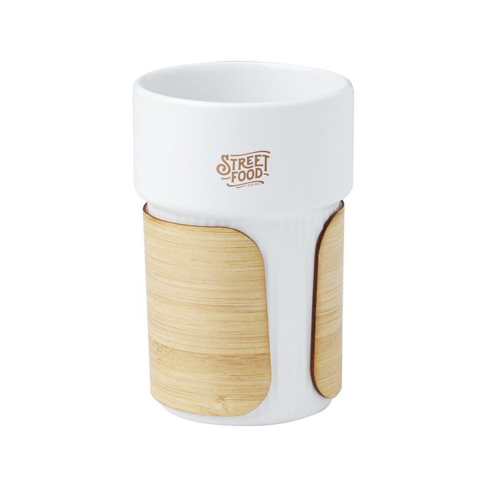 Стильный керамический стакан Fika поставляется со съемным бамбуковым чехлом, который идеально подходит для питья горячих напитков. Используемый бамбук поступает из устойчивых, экологически чистых и социально ответственных источников. Объем: 340 мл. Поставляется в коробке из переработанного картона. 94% Stoneware.