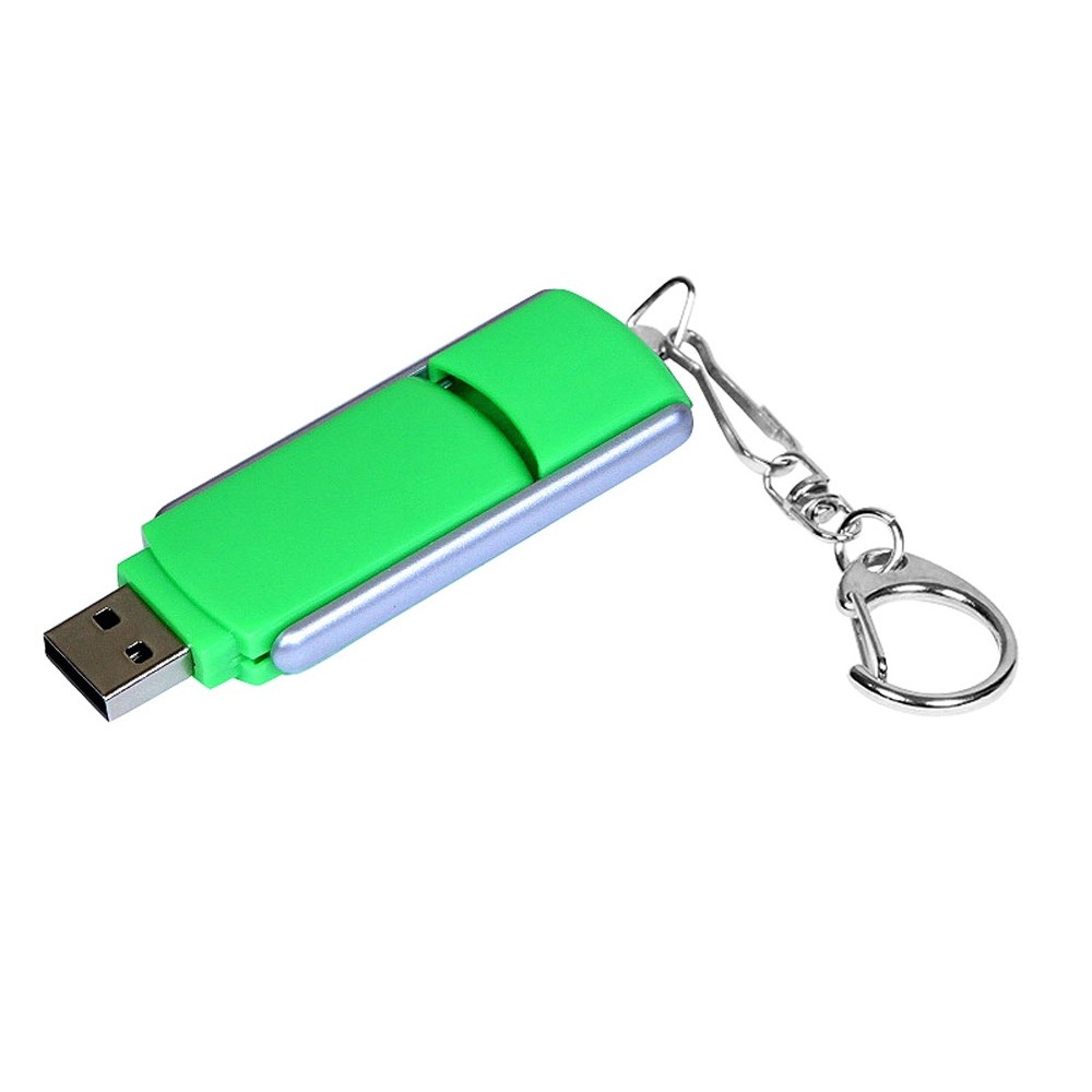 Флешка промо прямоугольной формы, выдвижной механизм, 32 Гб, зеленый