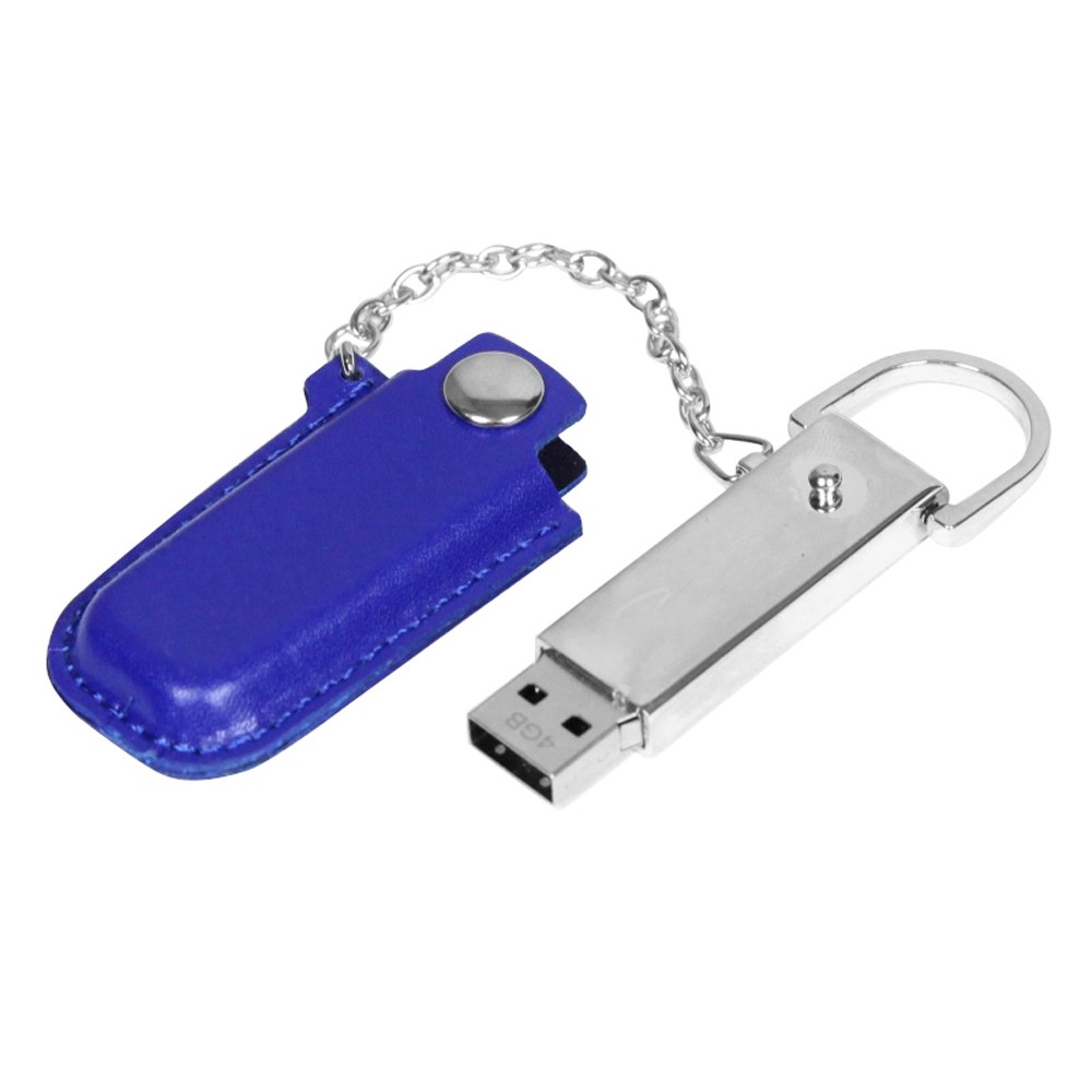 Флешка в массивном корпусе с кожаным чехлом, 8 Гб, синий