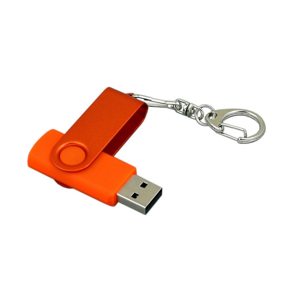 Флешка промо поворотный механизм, с однотонным металлическим клипом, 4 Гб, оранжевый