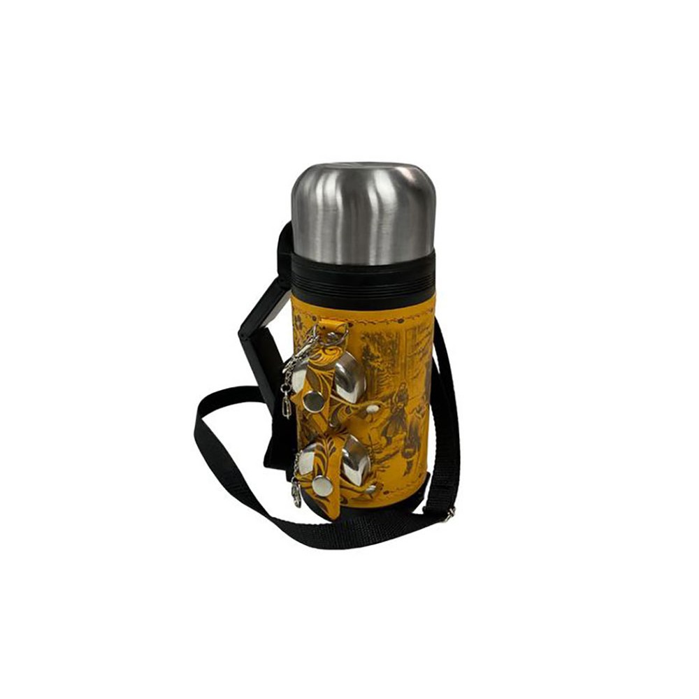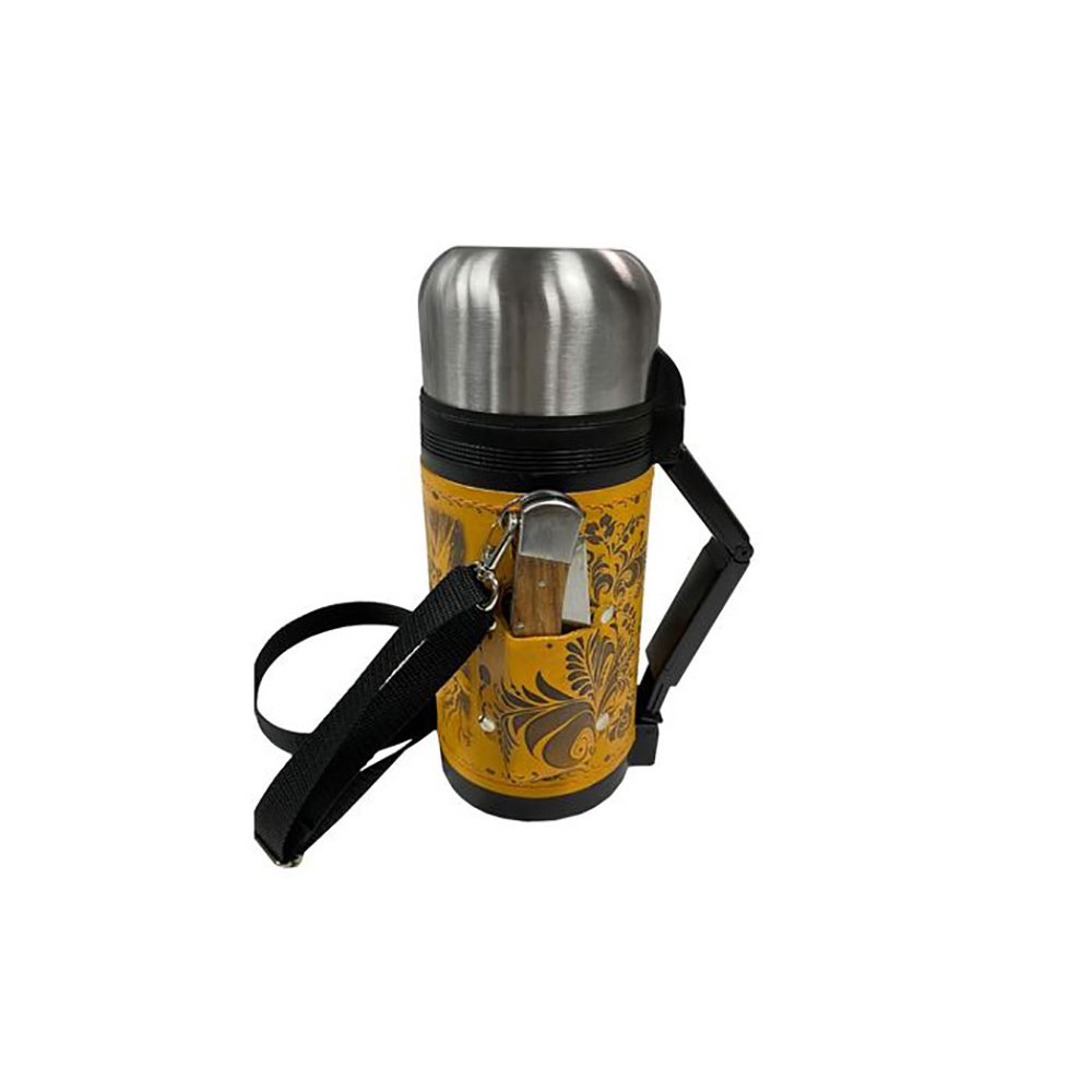 - Термос 1,2л (нерж.сталь) с металлической колбой в чехле из натуральной кожи с художественным выжиганием - 1 шт.