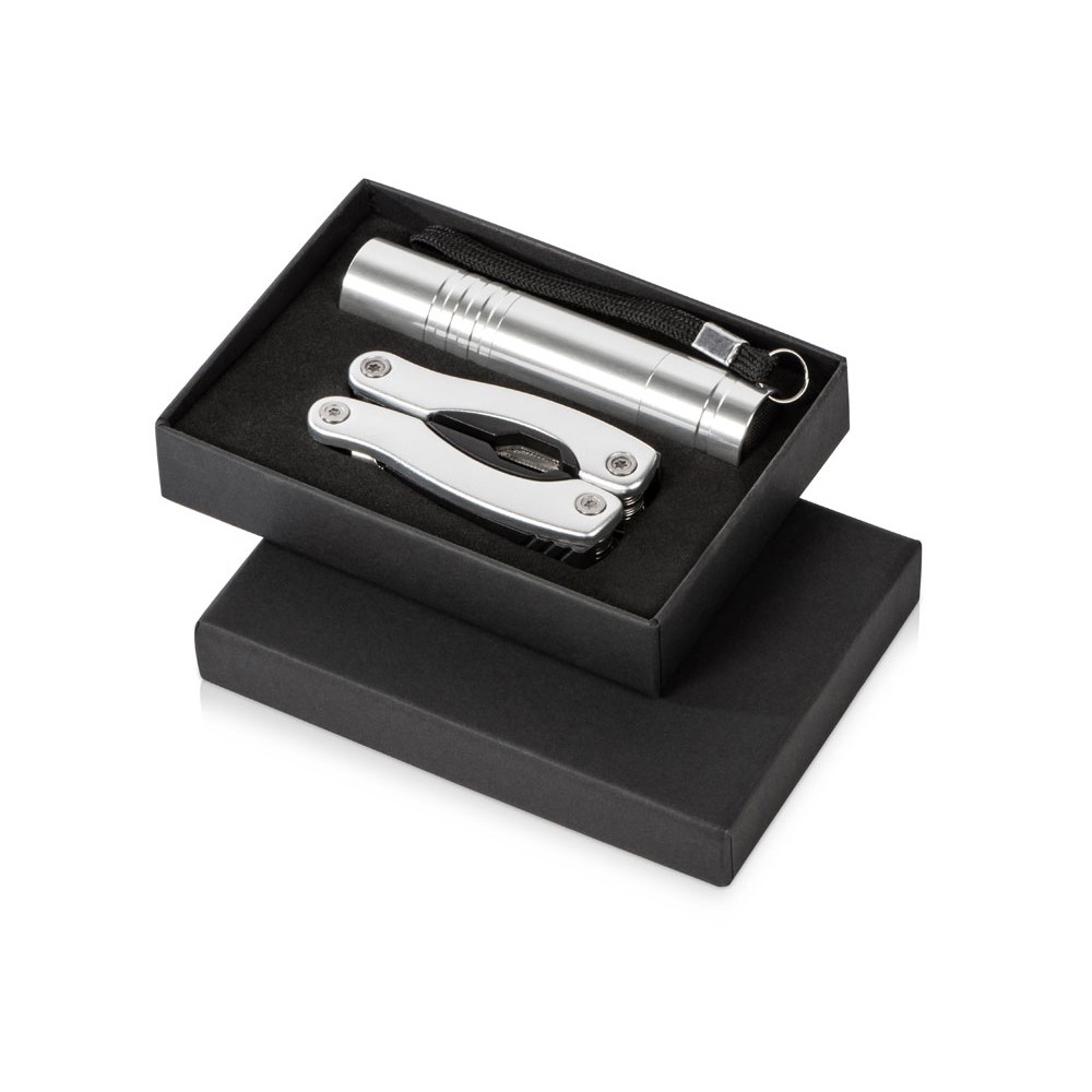 • Подарочный набор Scout с многофункциональным ножом и фонариком, серебристый