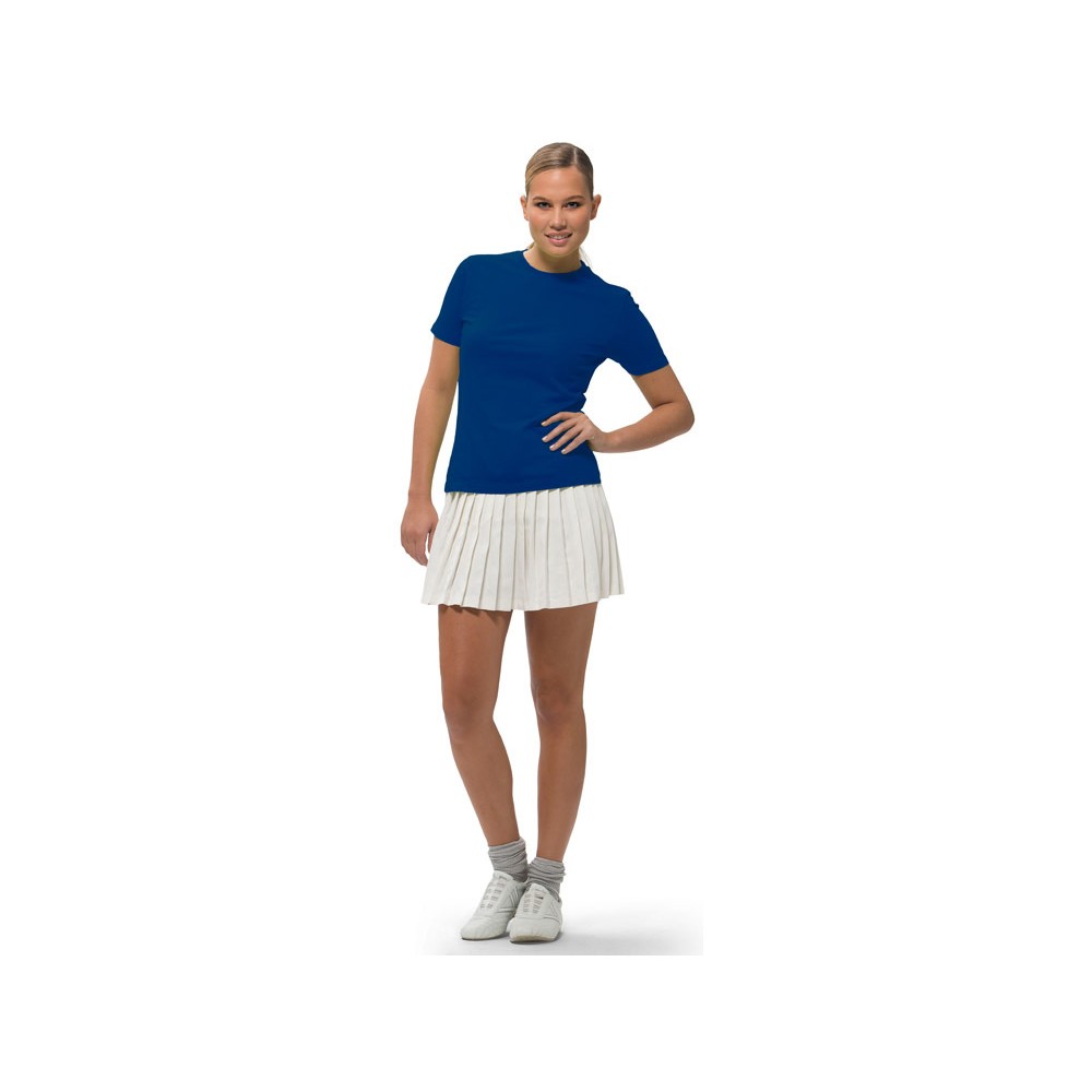 Женская футболка с короткими рукавами Ace. Модель стандартной посадки. Женская и детская модели - со швами по бокам. Резинка с эластаном и двойной строчкой на воротнике. Лента от плеча к плечу. Однослойная джерси, 100% хлопок. 150 г/м².