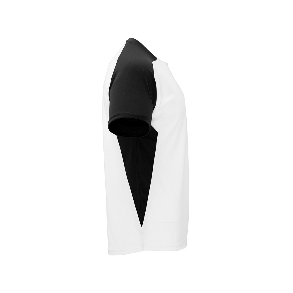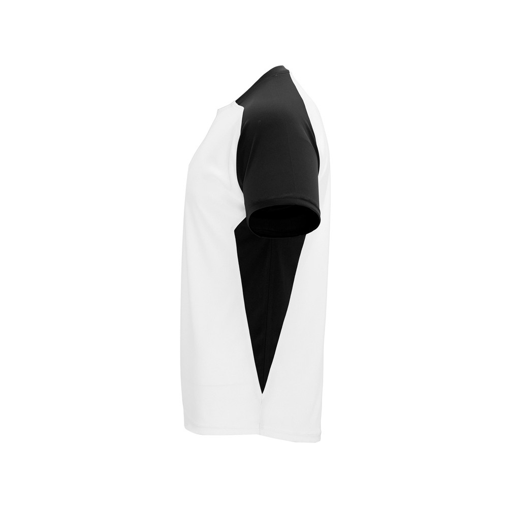 Спортивная футболка с коротким рукавом реглан. Круглый вырез горловины. Контрастные рукава и боковые вставки.
