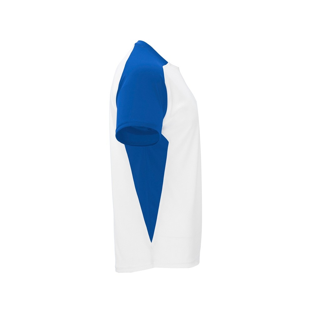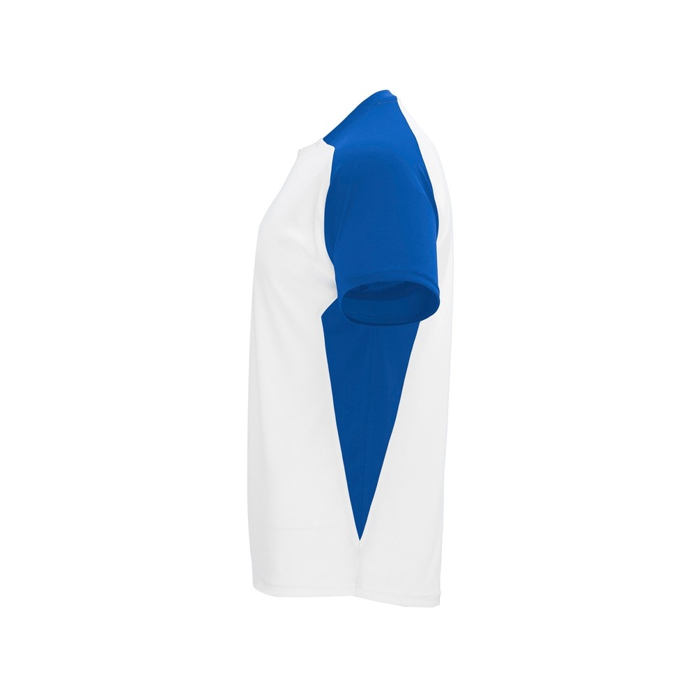 Спортивная футболка с коротким рукавом реглан. Круглый вырез горловины. Контрастные рукава и боковые вставки.