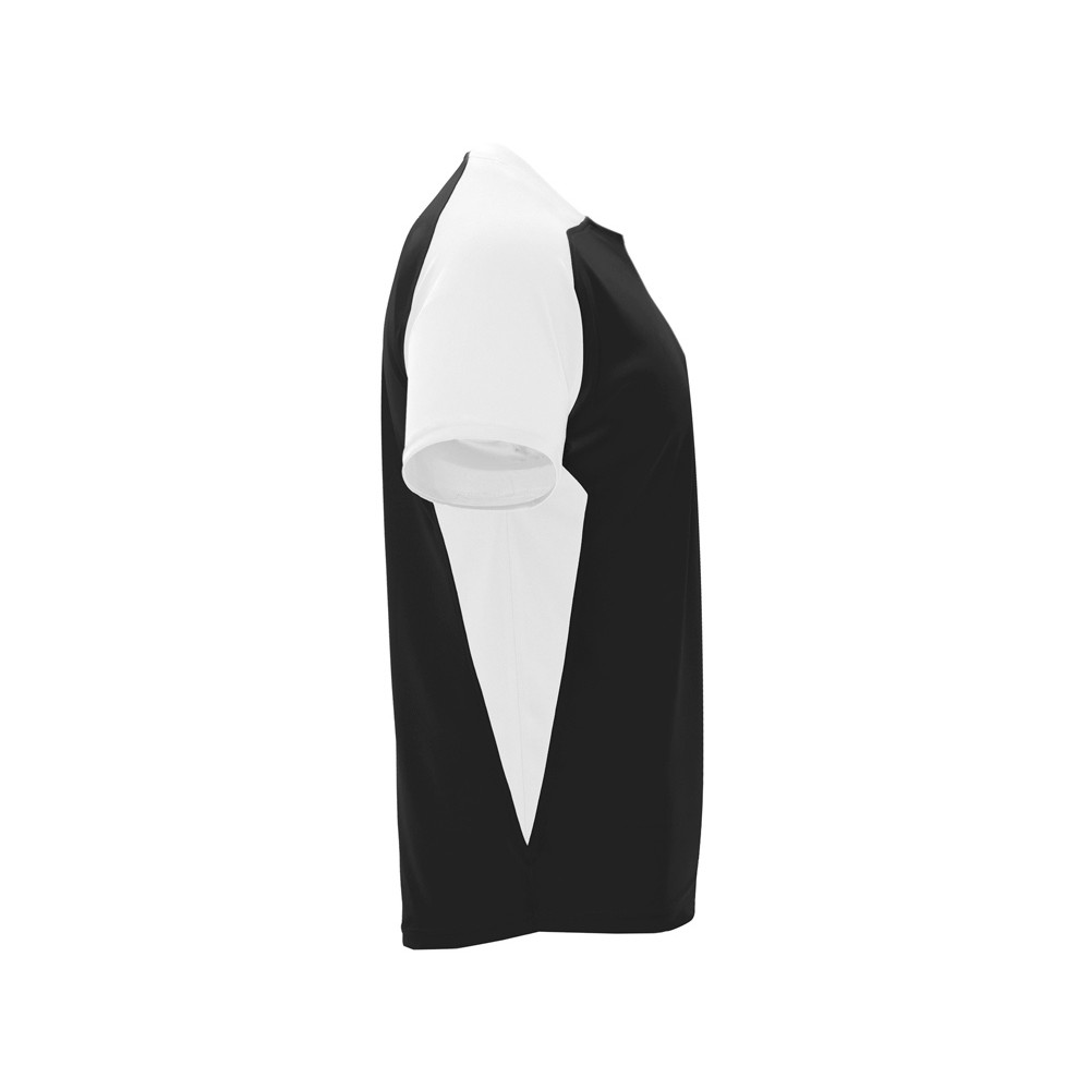Спортивная футболка с коротким рукавом реглан. Круглый вырез горловины. Контрастные рукава и боковые вставки.
