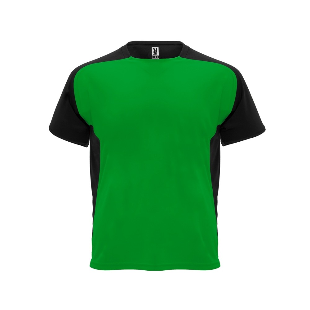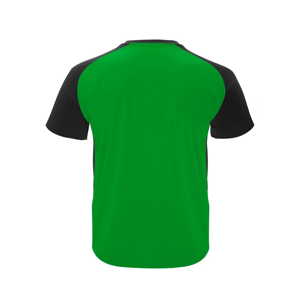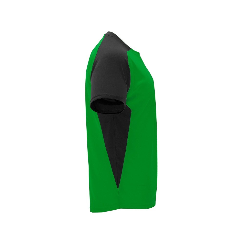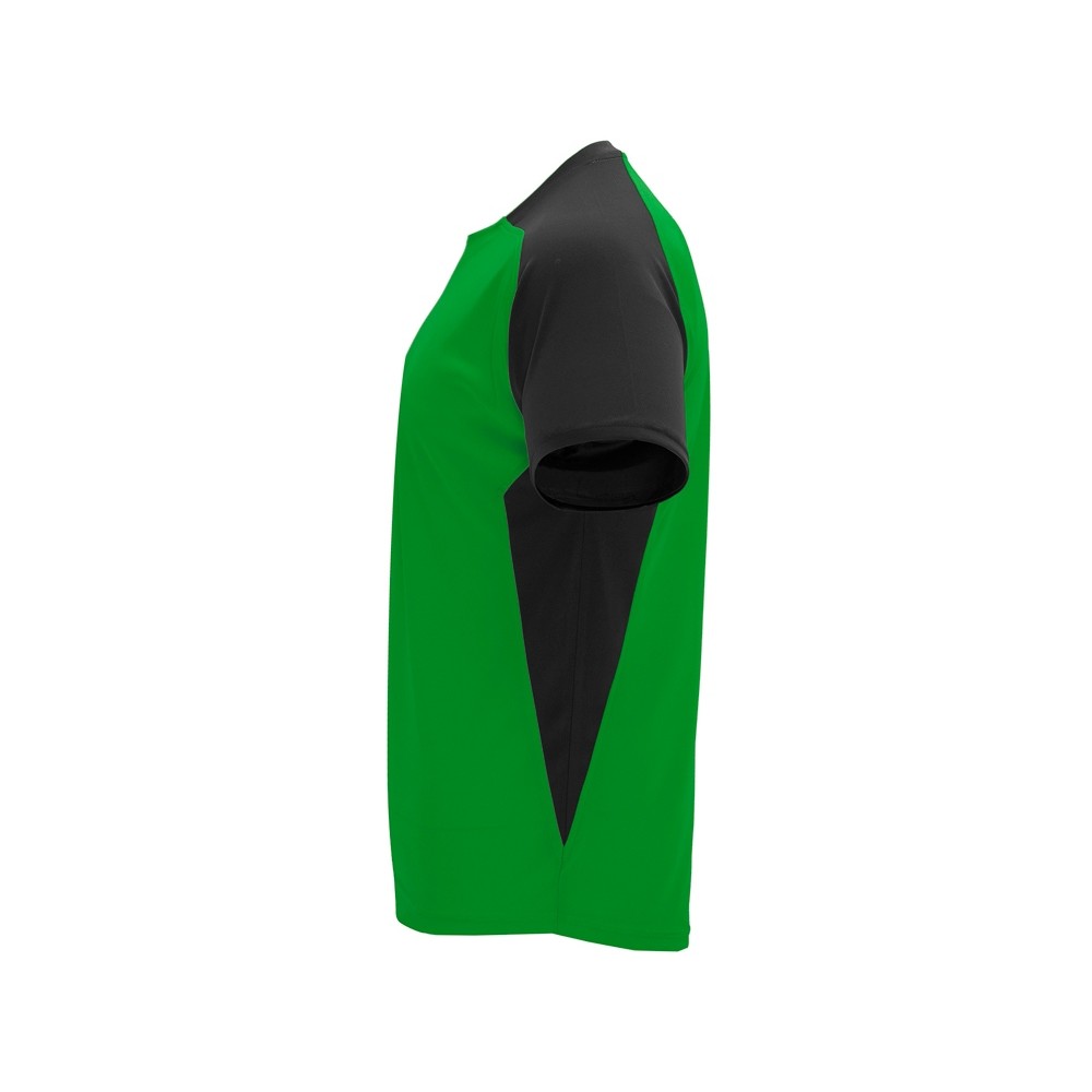 Спортивная футболка с коротким рукавом реглан. Круглый вырез горловины. Контрастные рукава и боковые вставки.