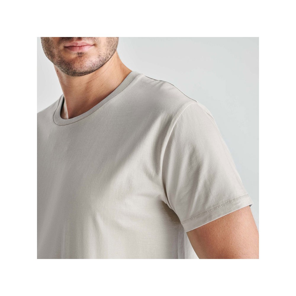 Бесшовная мужская футболка с коротким рукавом из органического хлопка. Круглый вырез горловины обработан рибом 1х1. Декоративные отделочные швы по низу изделия и рукава.