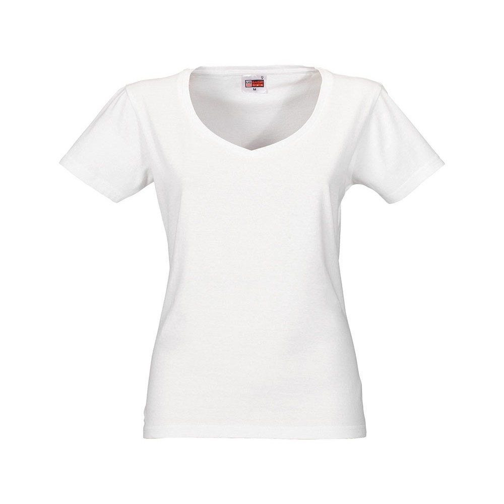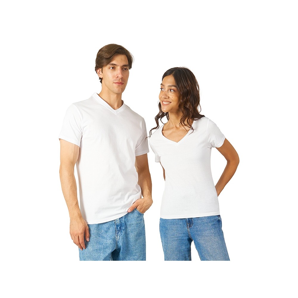 Женская футболка из натурального хлопка с элегантным V-образным вырезом. Материал отлично подходит для нанесения рекламной информации. Натуральная ткань не вызывает раздражения кожи.