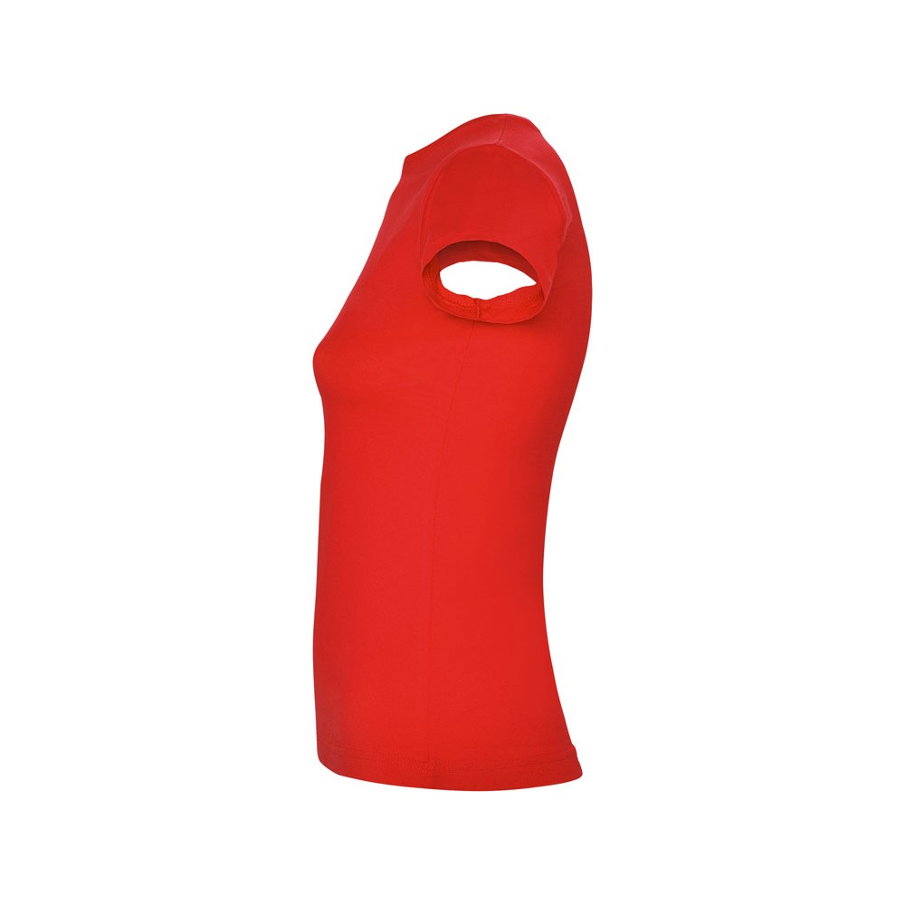 Приталенная женская футболка с боковыми швами и круглым вырезом горловины, двухслойный риб 1х1. Широкая цветовая палитра.