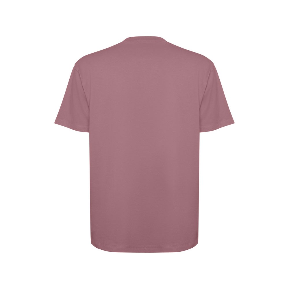 Оверсайз футболка с коротким рукавом. Круглый вырез горловины обработан рибом 2х1. Боковые швы. Широкая двойная отстрочка по рукавам и низу.