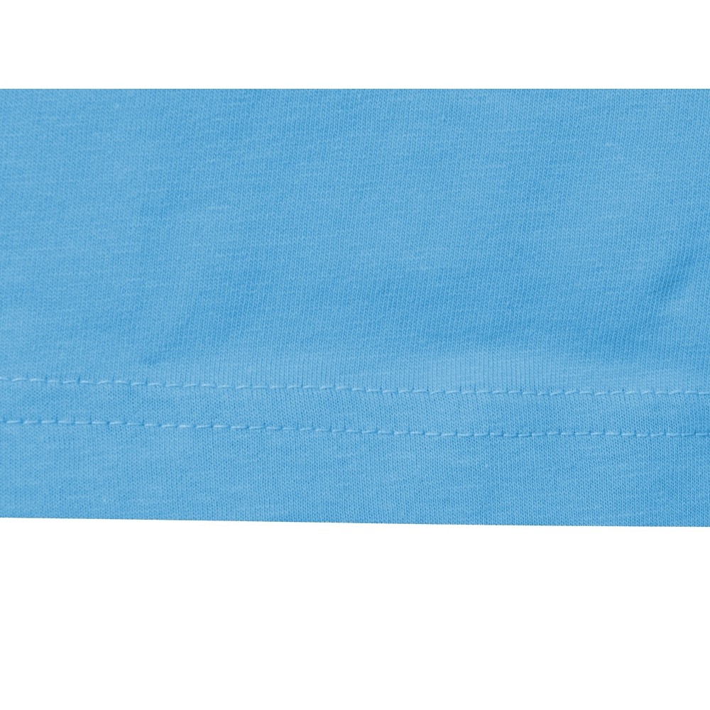 Материал — хлопковое джерси, плотность ткани средняя (150 гр/м2), что позволяет носить футболку в жаркие летние дни.