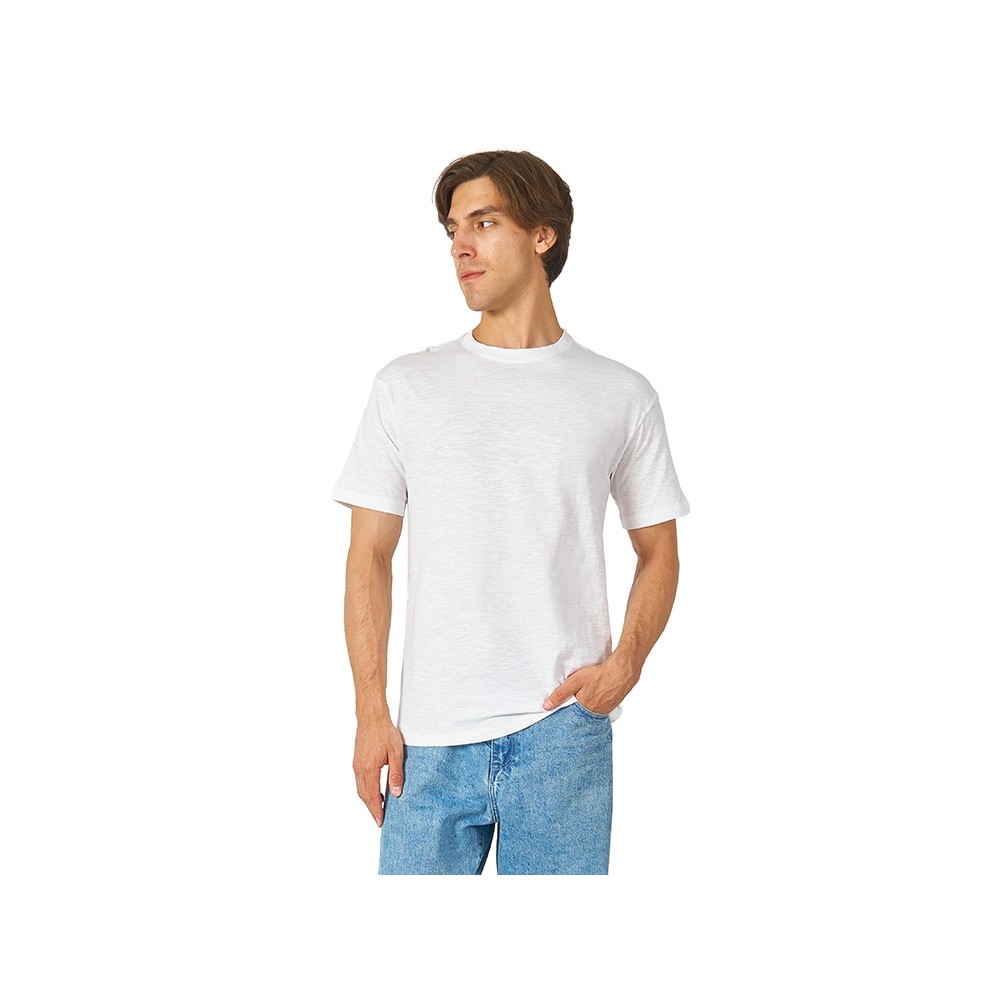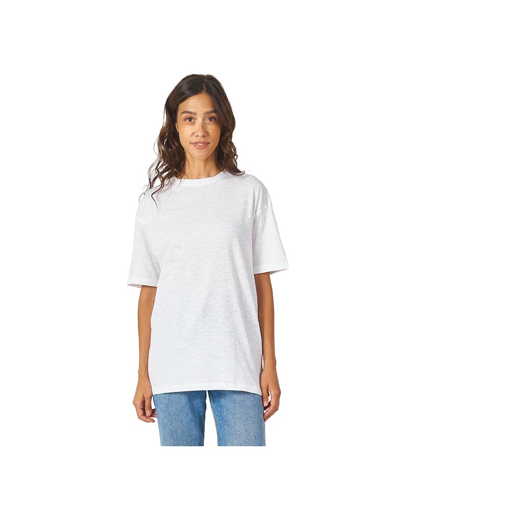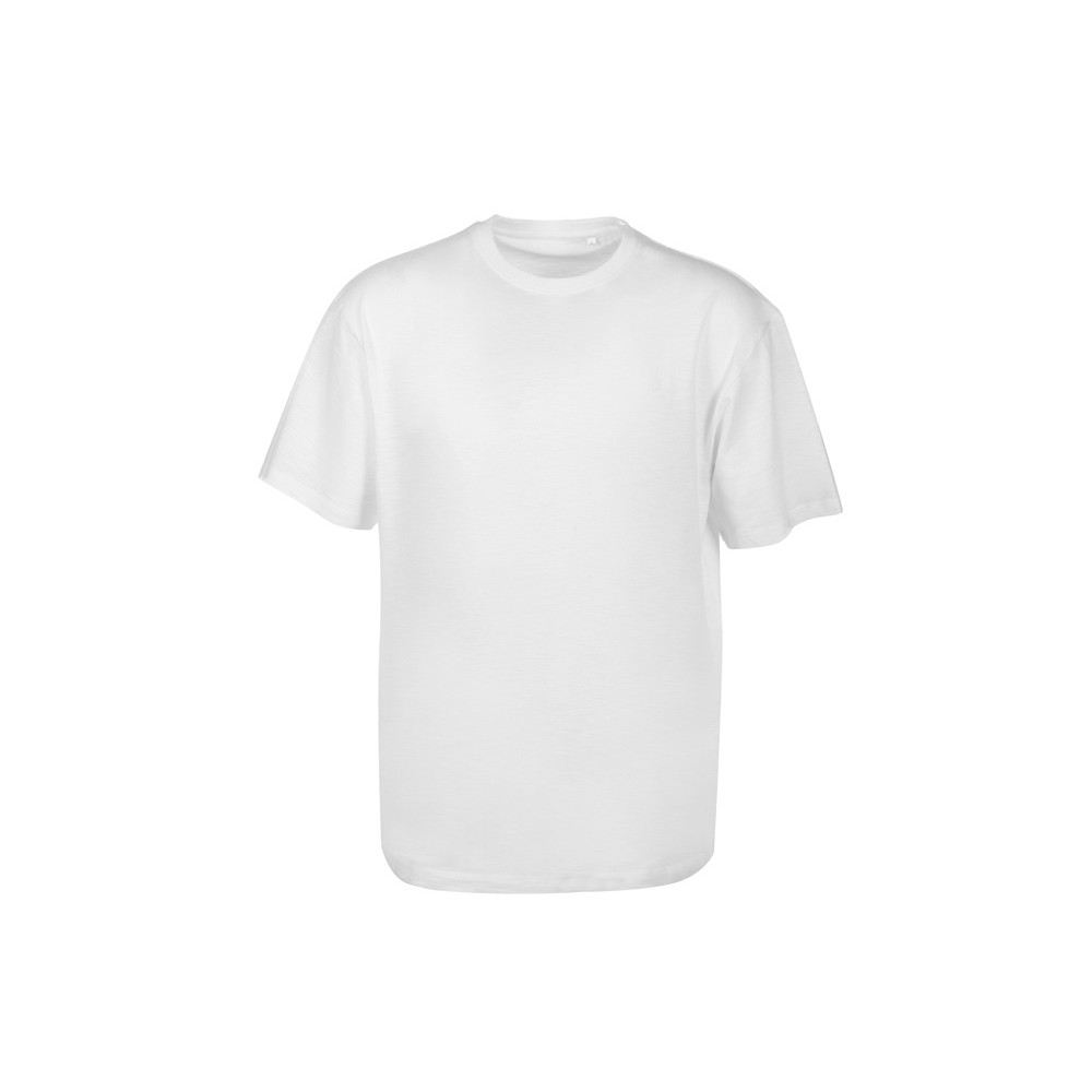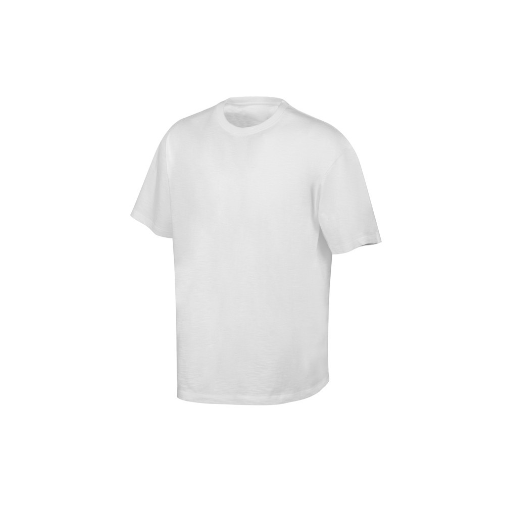 Полотно футболки имеет необычную структуру - с протяжками, но при этом гладкую поверхность, что обеспечивает идеальную поверхность для нанесения: прямая печать, трафаретная или термотрансфер прекрасно ложатся на такое полотно. Декоративная отстрочка по низу рукавов и изделия, а также отстрочка по горловине позволяют футболке дольше сохранять форму.