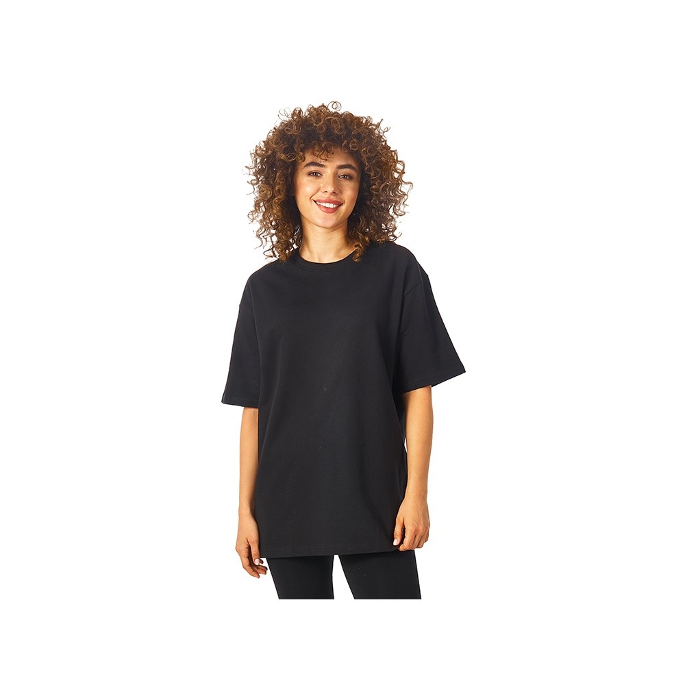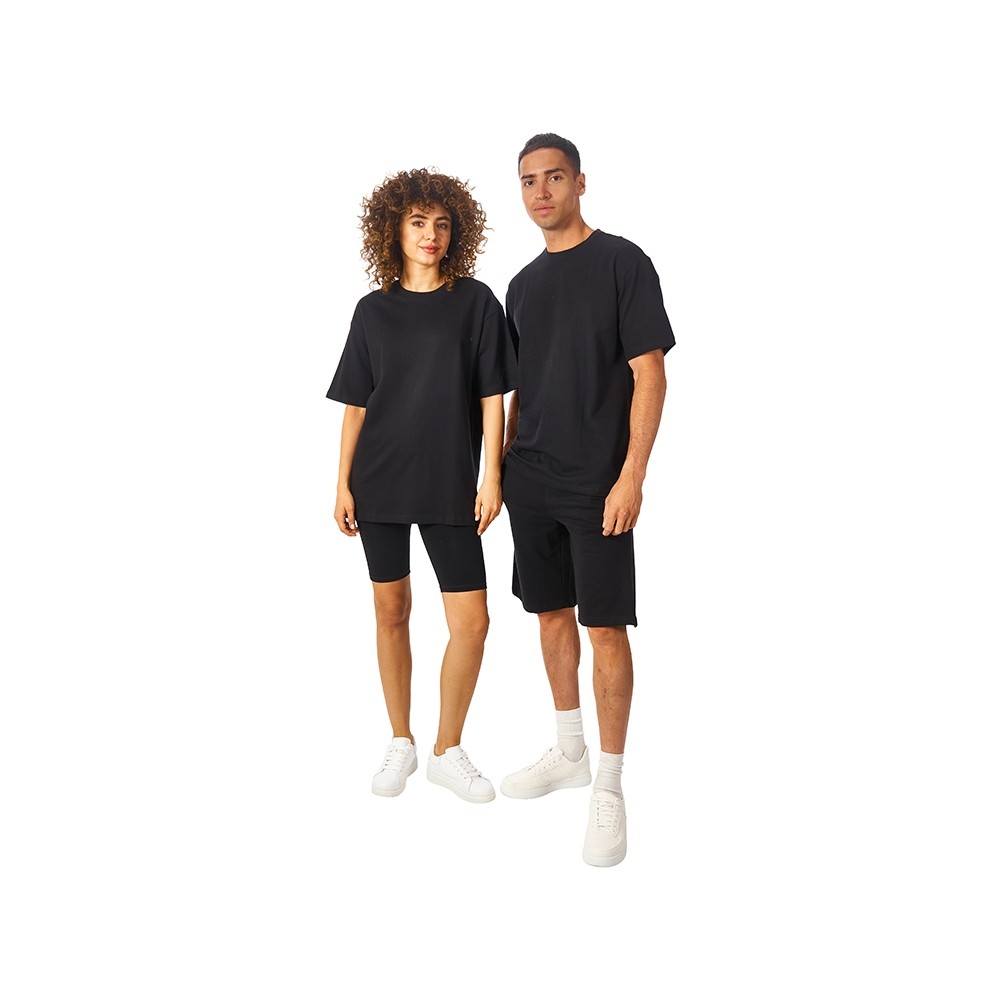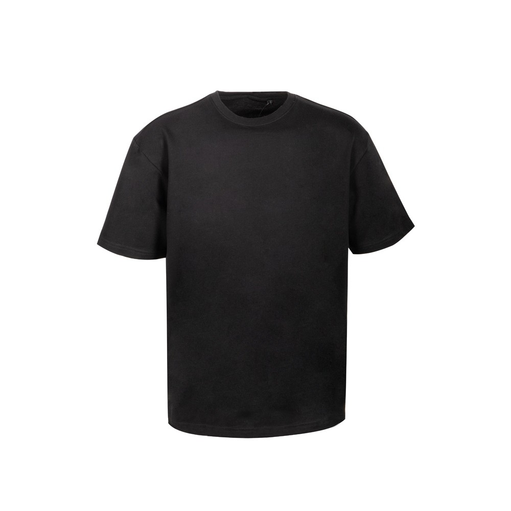 Футболка выполнена из хлопкового френч терри с петельками на изнаночной стороне. Горловина обработана рибом 2х2 и дополнительно усилена тесьмой-елочкой с внутренней стороны спинки. Гладкая поверхность полотна позволяет идеально нанести изображение. Футболка расслабленного силуэта для прогулок и других видов приятного времяпрепровождения