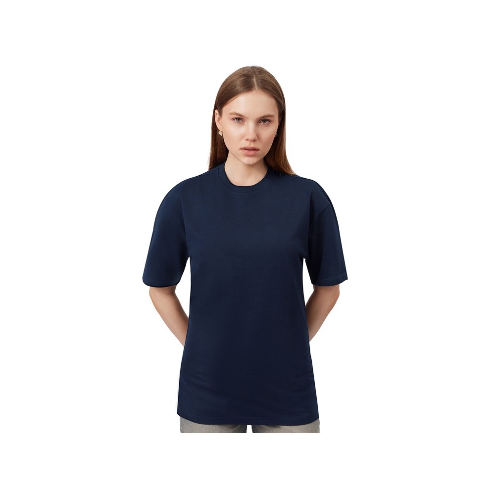 Футболка выполнена из хлопкового френч терри с петельками на изнаночной стороне. Горловина обработана рибом 2х2 и дополнительно усилена тесьмой-елочкой с внутренней стороны спинки. Гладкая поверхность полотна позволяет идеально нанести изображение. Футболка расслабленного силуэта для прогулок и других видов приятного времяпрепровождения