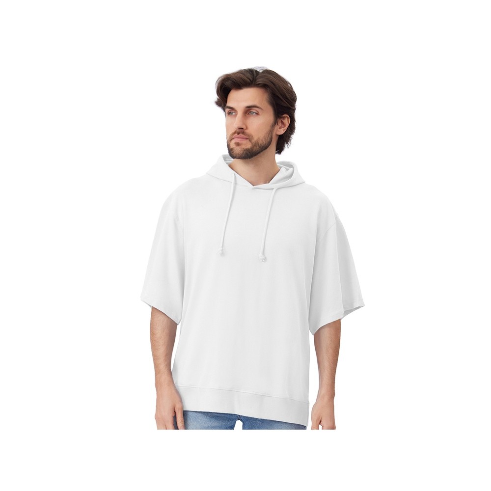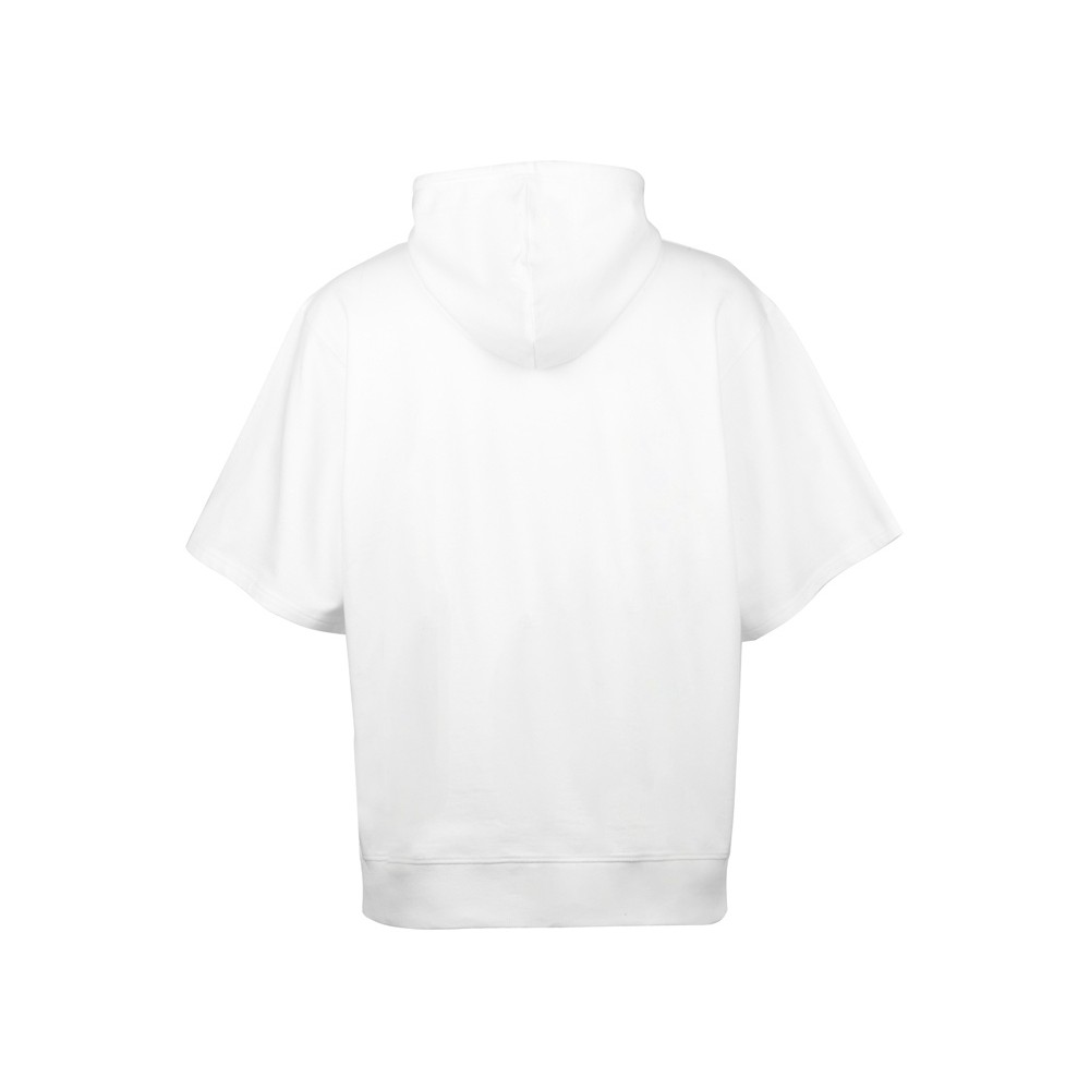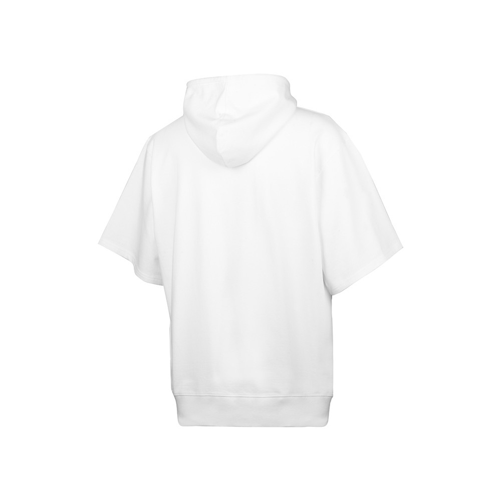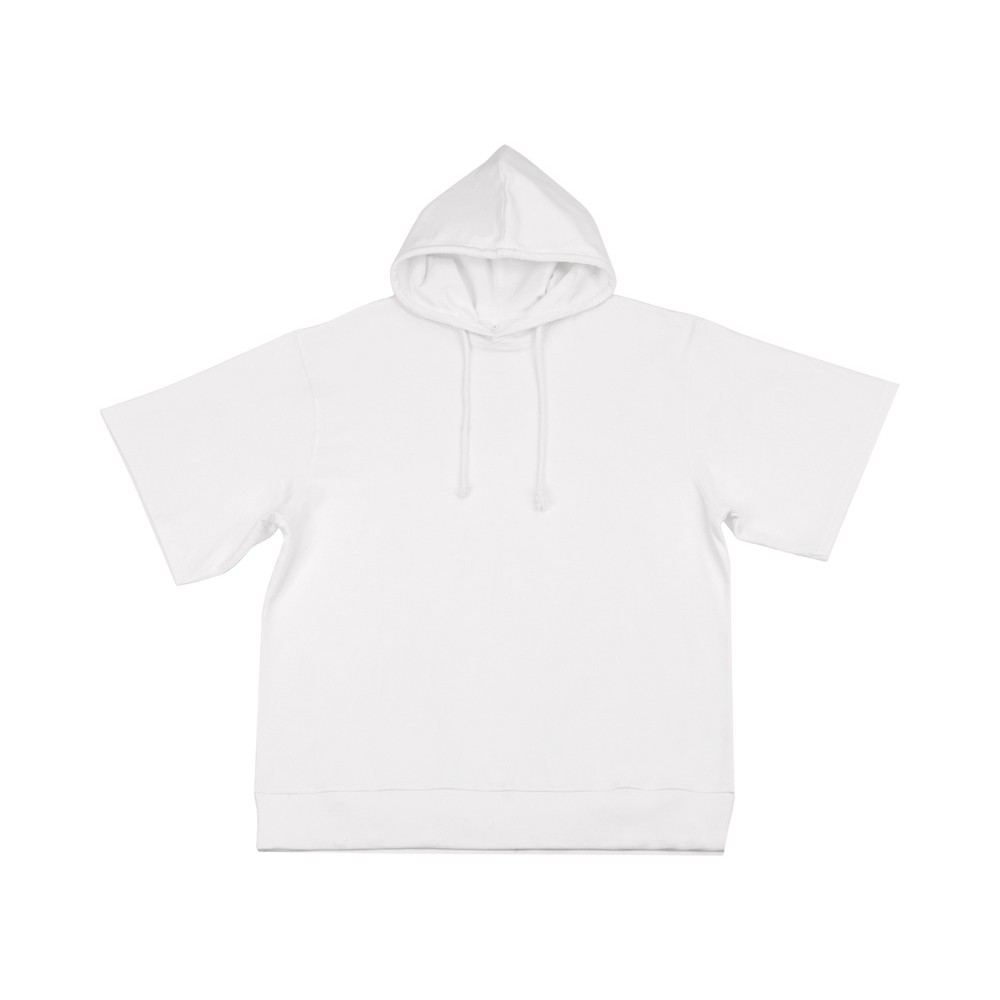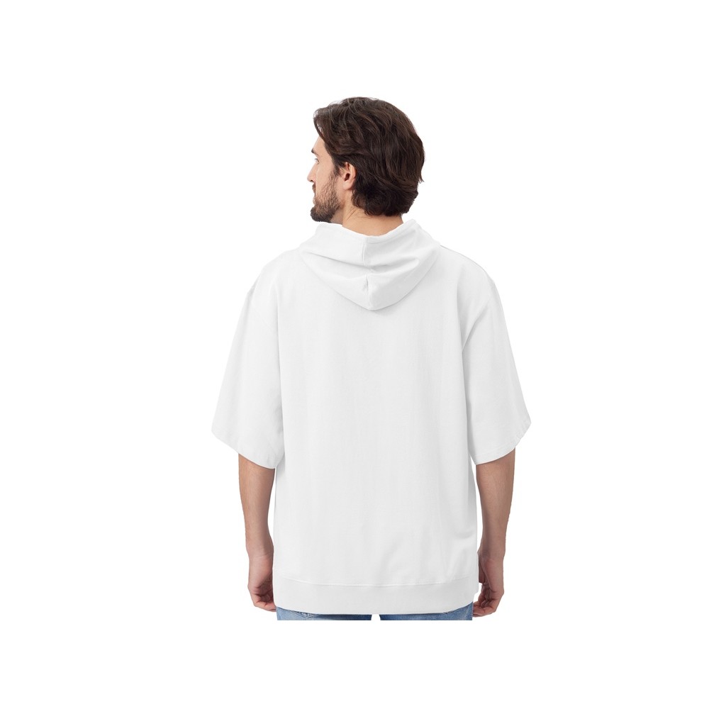 Худи с коротким рукавом выполнено из хлопкового френч терри с петельками на изнаночной стороне. Подкладка капюшона выполнена из основного полотна для объемной посадки. Модель комфортной и актуальной посадки оверсайз отлично подходит для обычной жизни и в качестве промо мерча.