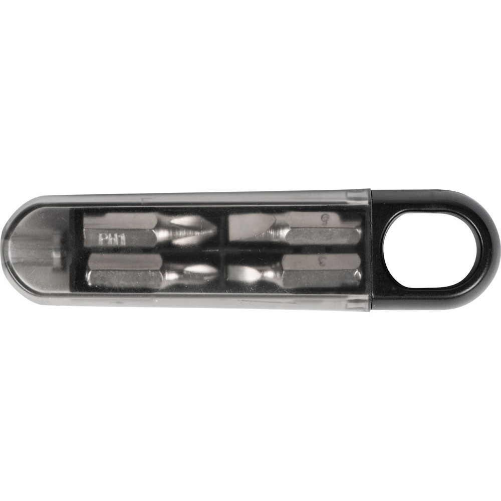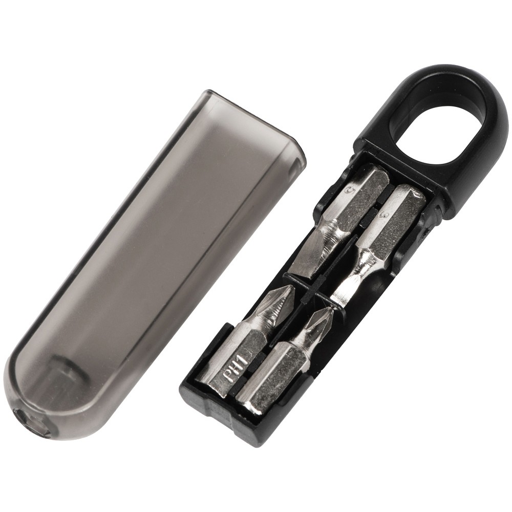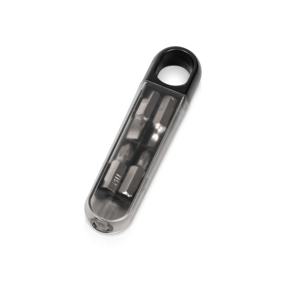 Набор отверток состоит из 4 бит (две крестовые, две поперечные разного размера), которые подсоединяются к ручке-кейсу. Благодаря прозрачной крышке все биты видны, даже когда кейс закрыт, что помогает держать их количество под контролем.