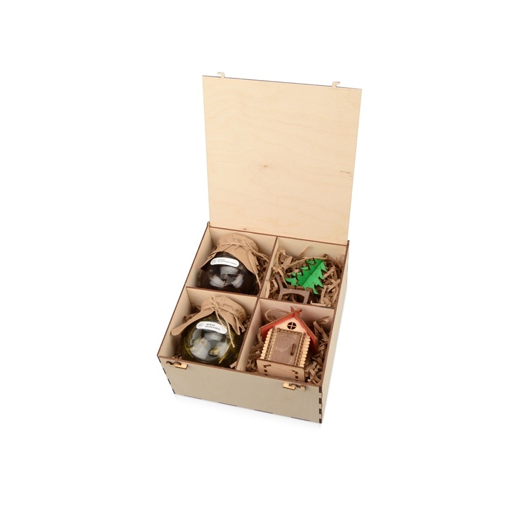 Коробка выполнена из березовой фанеры и послужит отличным дополнением экоподарка.