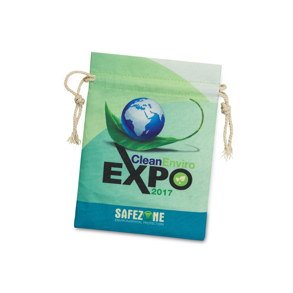 Стильная упаковка для украшений, выполненная из натурального хлопка. Маленький и удобный подарочный мешочек дополнен завязками. Текстурная ткань имеет естественный цвет неотбелённого хлопка, поэтому хорошо транслирует идеи экологичности и отказа от лишнего пластика. Полноцветная печать доступна на обеих сторонах.