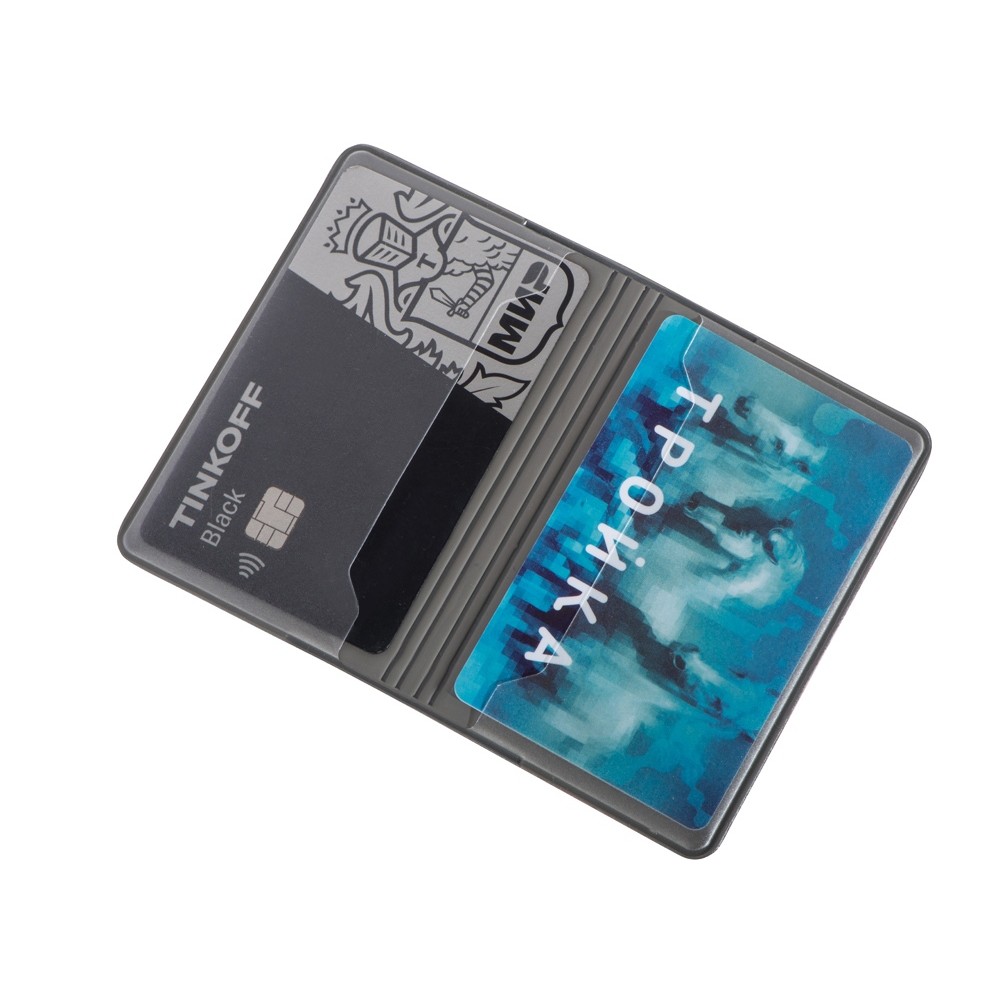 Футляр для кредитных карт в виде книжки с отделением для 2-х пластиковых карт надежно защищает лицевую и оборотную часть карты.