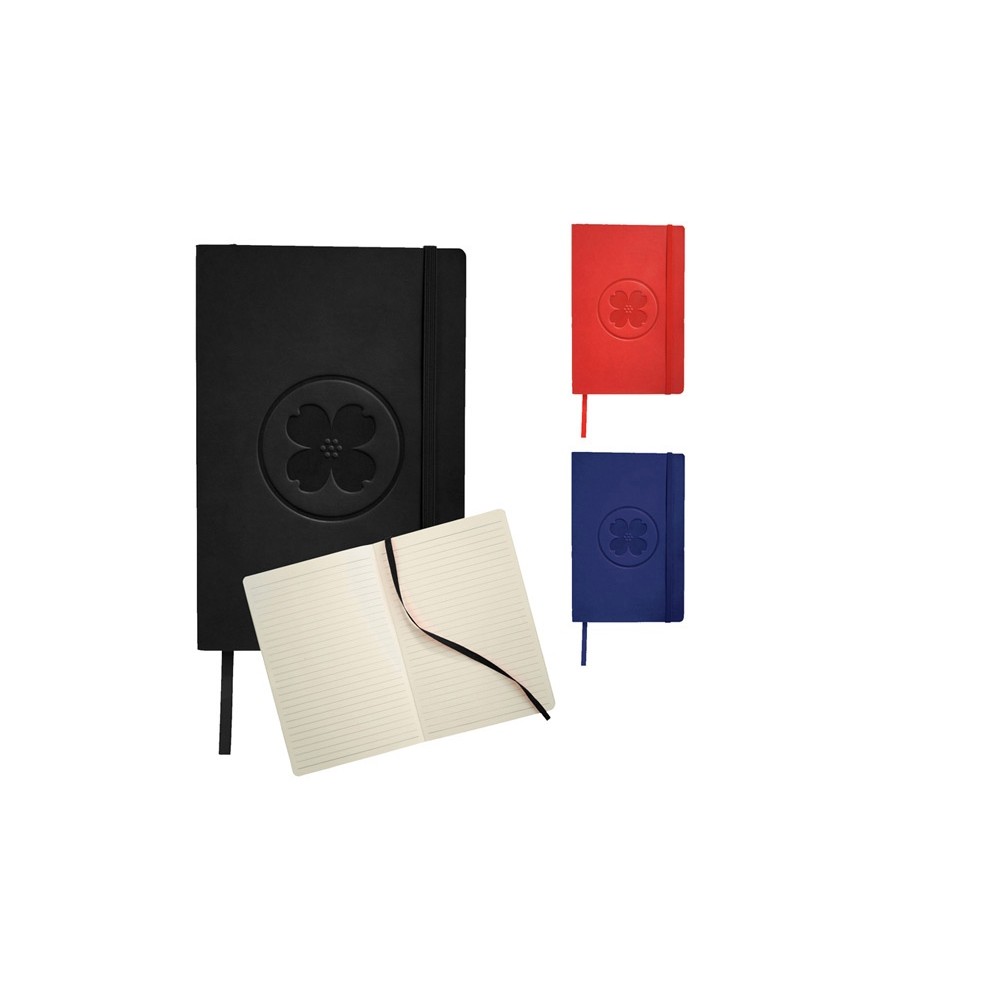 Классический блокнот с мягкой обложкой. Блокнот с мягкой на ощупь обложкой (ориентир размер А5) с эластичной застежкой, закладкой, кармашком для заметок внутри и 80 листов линованной бумаги (80 г/м²). Термо ПУ.