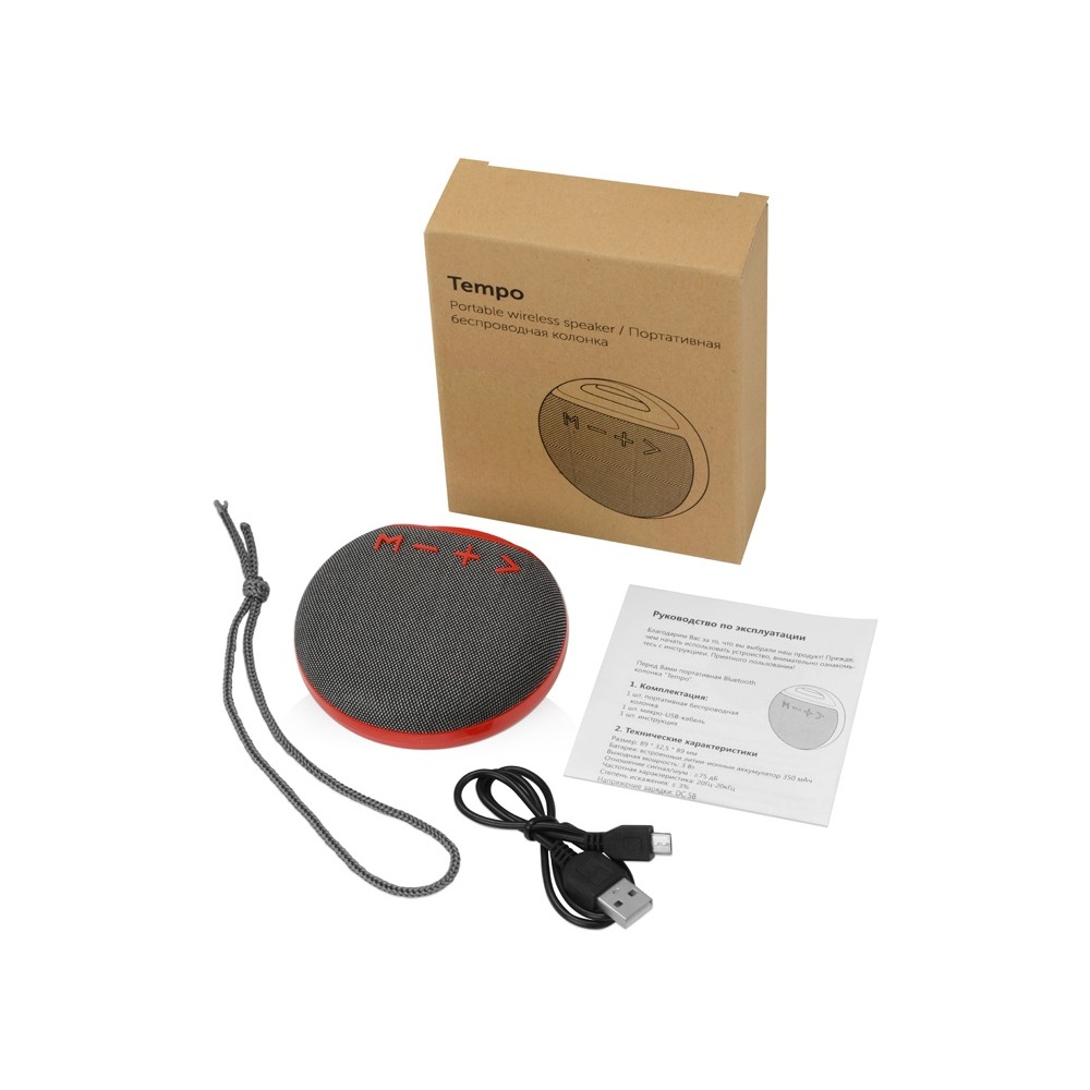 Если вы ищите надежную и стильную портативную колонку, закажите "Tempo"! Она выигрышно подчеркнет бренд компании с помощью таких методов, как термотрансфер, УФ-печать и тампопечать. У "Tempo" стильный дизайн, контрастный цвет кнопок и задней крышки, а также удобное крепление для переноски. Колонка обтянута акустической тканью, проигрывает музыку со стандартной USB флешки или micro SD карты. "Tempo" позволяет принимать звонки и имеет режим радио.