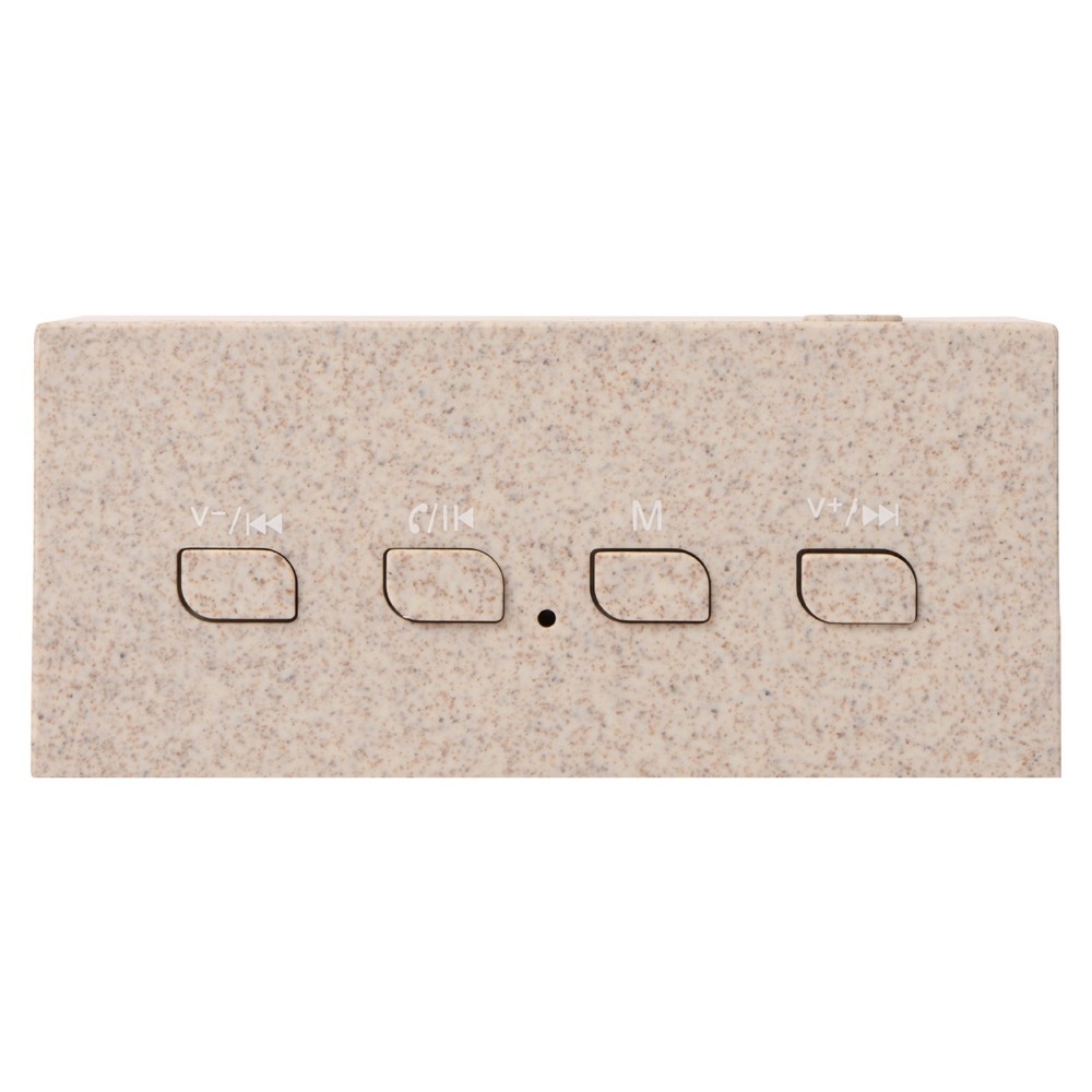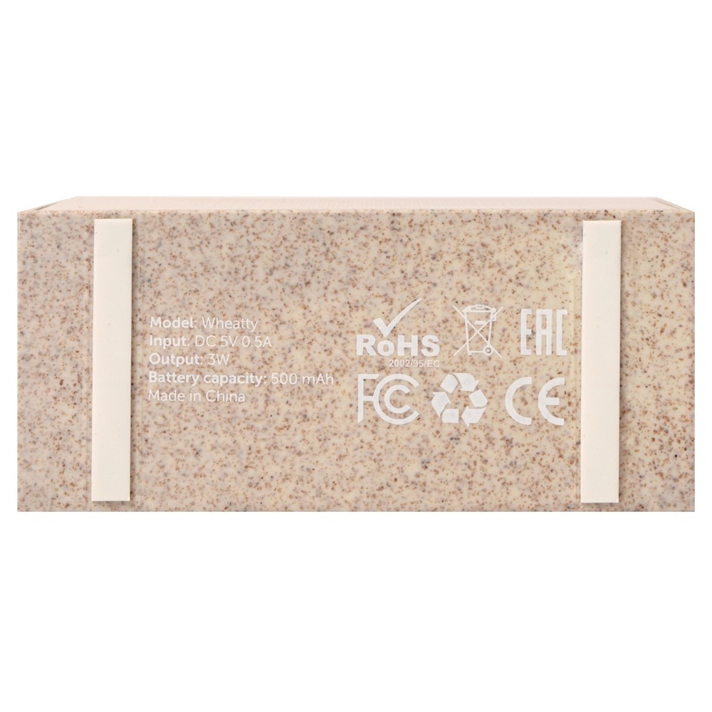 Беспроводная колонка "Wheatty" на 35% состоит из переработанной пшеничной соломы, что является положительным примером сокращения производства и потребления пластика в мире. Воспроизводит музыку в течение 3-х часов. Мощность 3 Вт. В колонке предусмотрены кнопки управления и линейный вход (AUX). Компактная колонка с быстрым подключением (Bluetooth 5.0). Поставляется в крафт упаковке из переработанной бумаги.