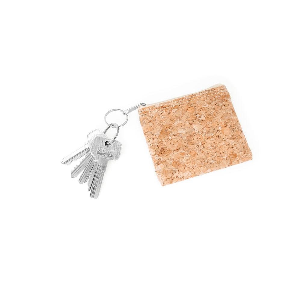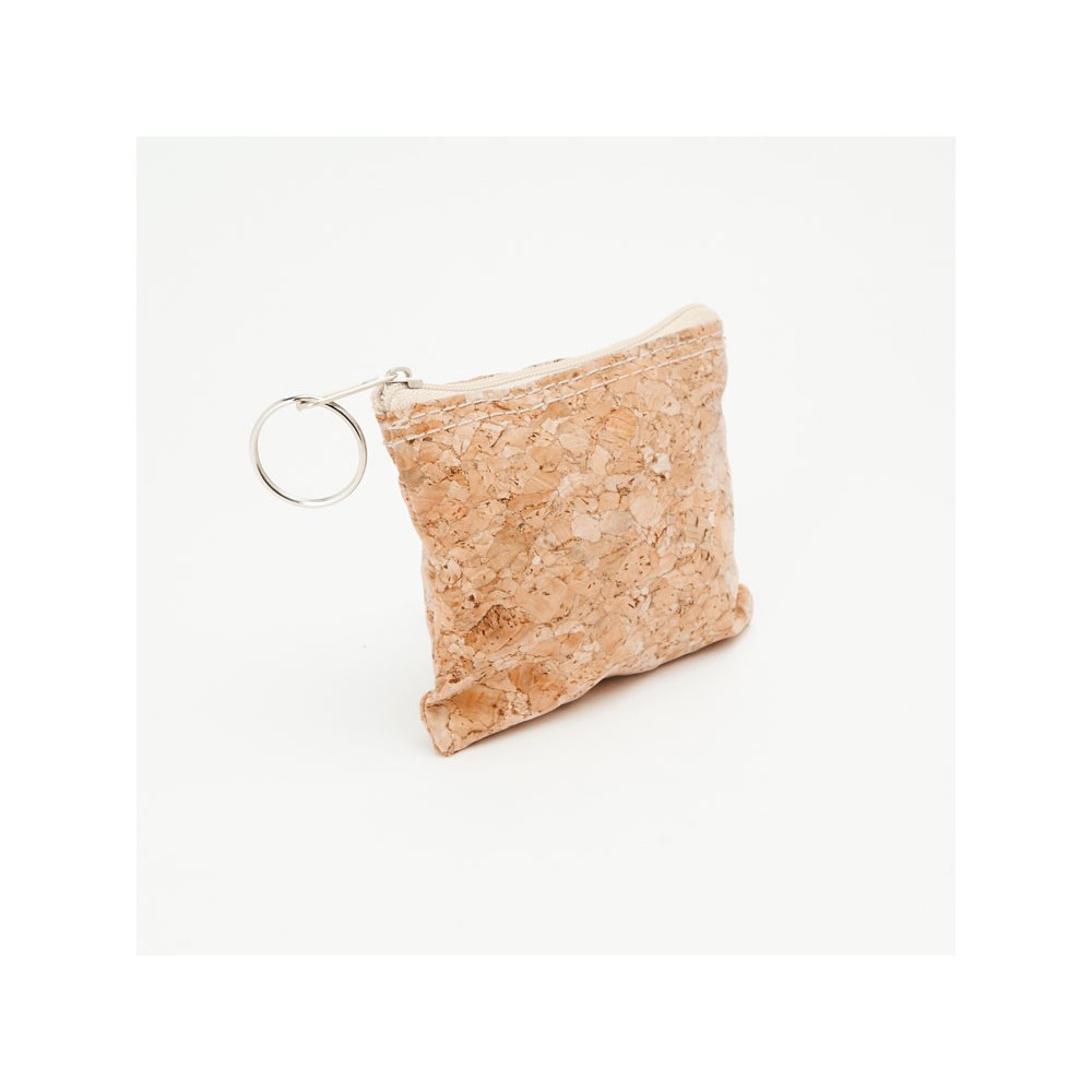 Кошелек из натуральной пробки с серебристым кольцом на застежке-молнии.