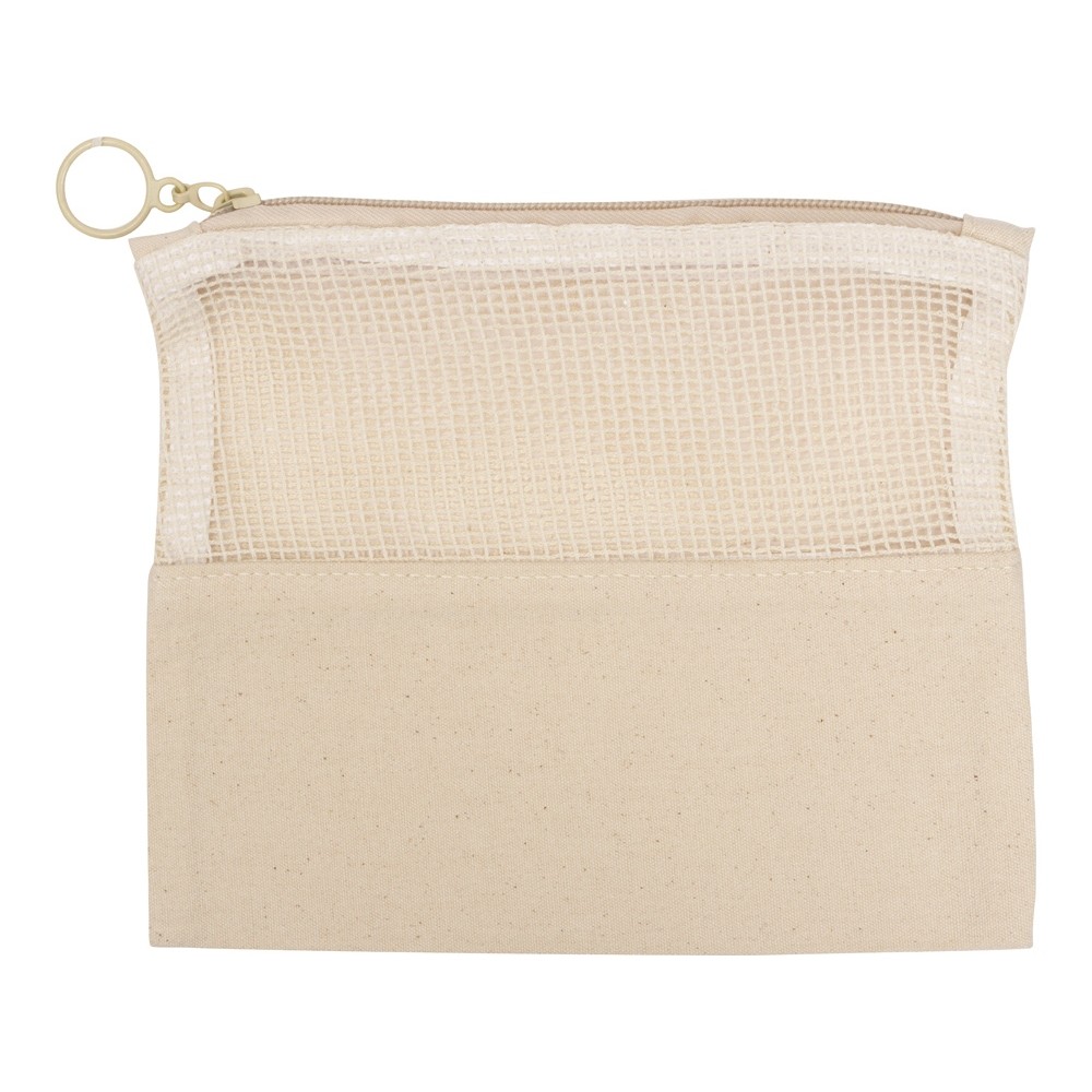 Вместительная хлопковая косметичка на молнии с сетчатой вставкой удобна для хранения личных вещей, косметики и гигиенический принадлежностей дома или в путешествии.