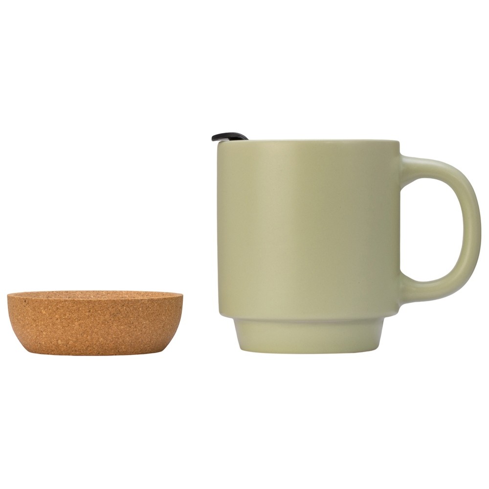 Кружка Denpasar с пробковым дном и крышкой, цветная с двух сторон, оливковый