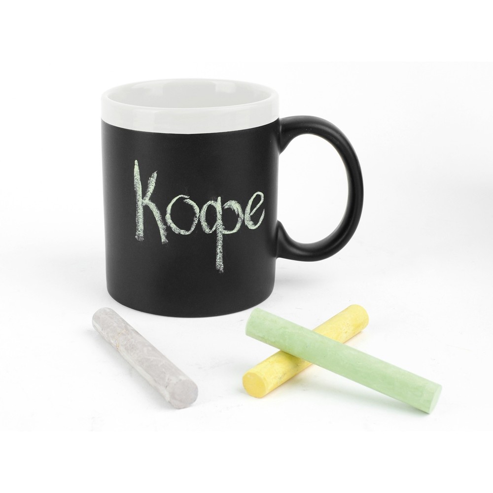 Оригинальная кружка на 320 мл имеет специальную поверхность, на которой можно рисовать мелками, тем самым меняя дизайн кружки каждый раз. Необычный и полезный подарок для родных и друзей. Мелки в комплект не входят.