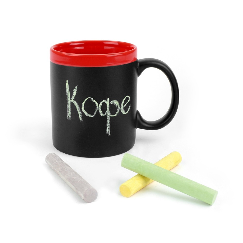 Оригинальная кружка на 320 мл имеет специальную поверхность, на которой можно рисовать мелками, тем самым меняя дизайн кружки каждый раз. Необычный и полезный подарок для родных и друзей. Мелки в комплект не входят.