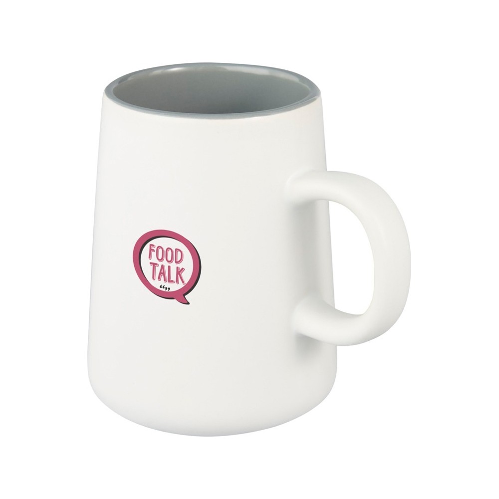 Керамическая кружка Joe с удобной круглой ручкой матовая снаружи и глянцевая внутри. Объем 450 мл. Можно мыть в посудомоечной машине независимо от методов нанесения печати. В подарочной коробке из переработанного картона.