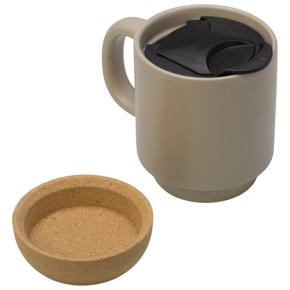 Кружка Denpasar с пробковым дном и крышкой, цветная с двух сторон, бежевый