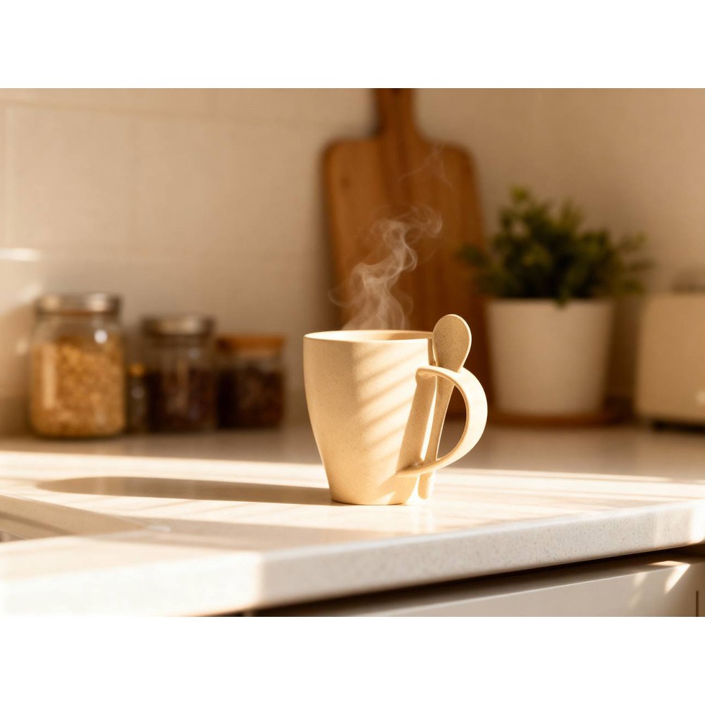 • Пшеничная кружка Nina с ложкой, 300ml, бежевый