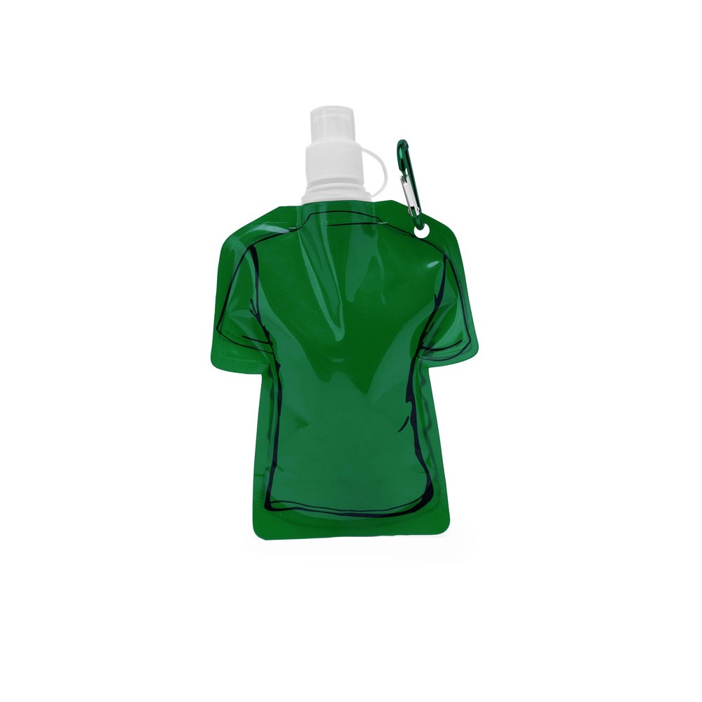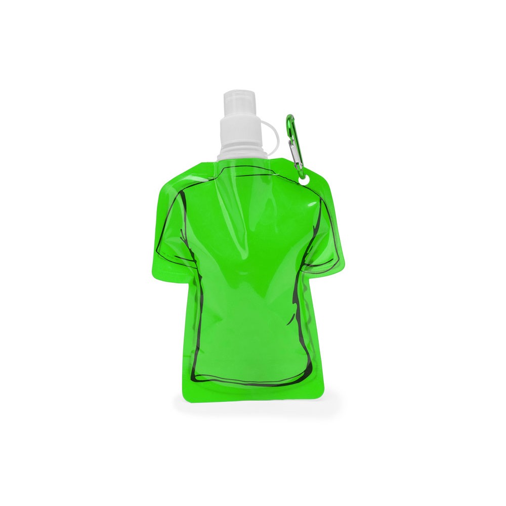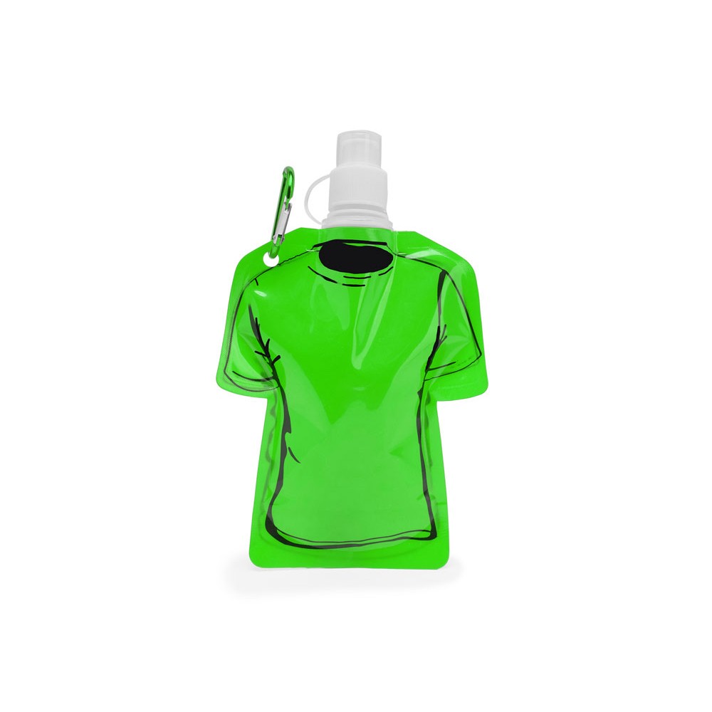 Гибкая емкость для питья в форме футболки, с защитным колпачком и карабином для удобства транспортировки. Объем 470 мл.